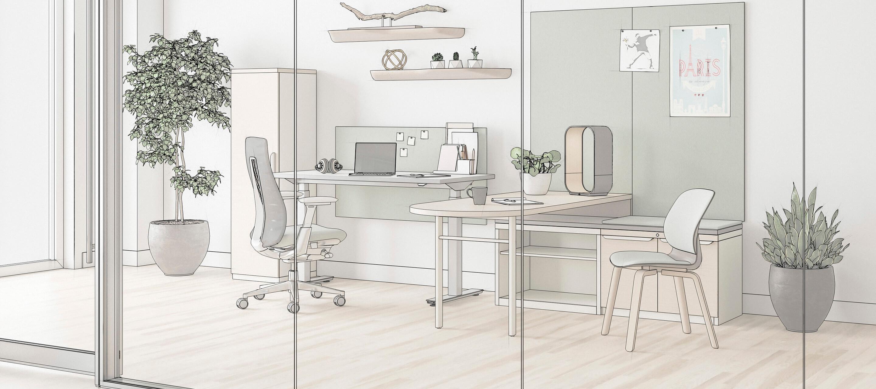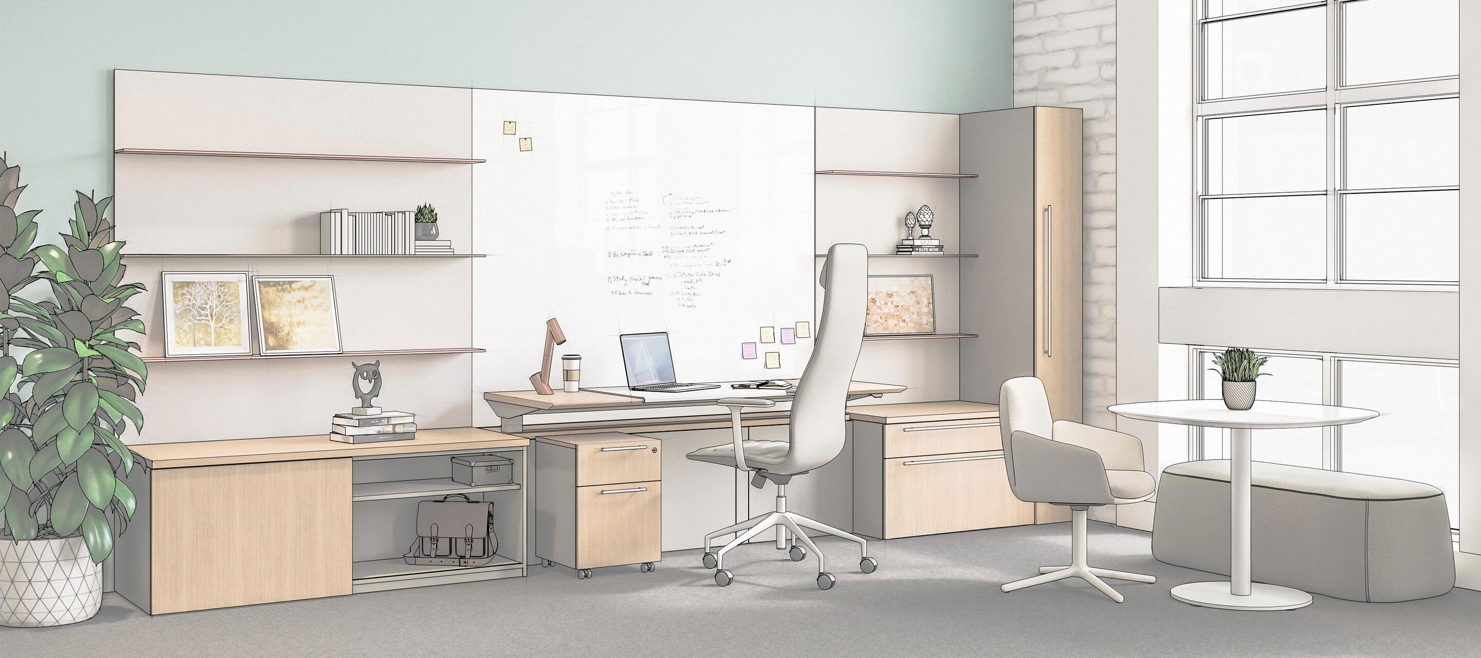 • Options for structured pedestal desks, open leg -supported surfaces, or less formal configurations