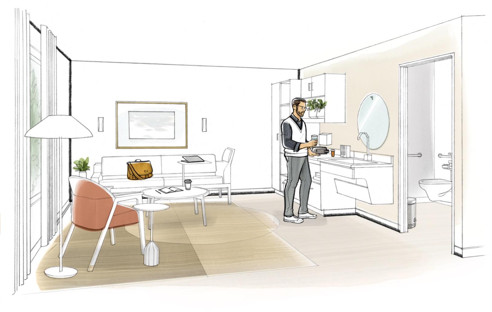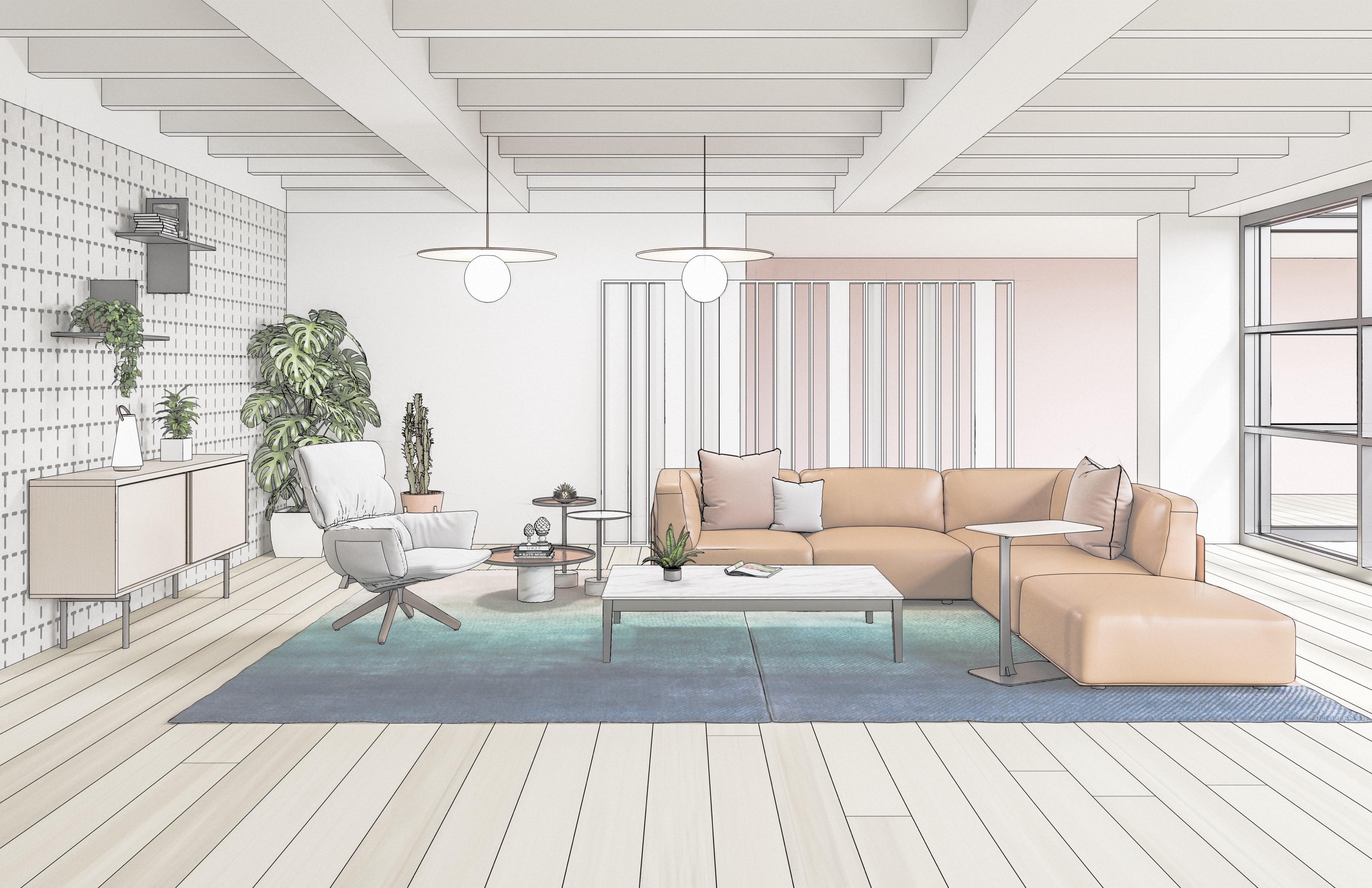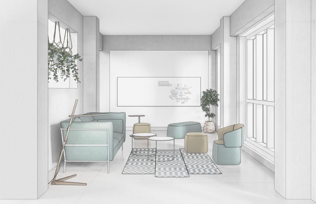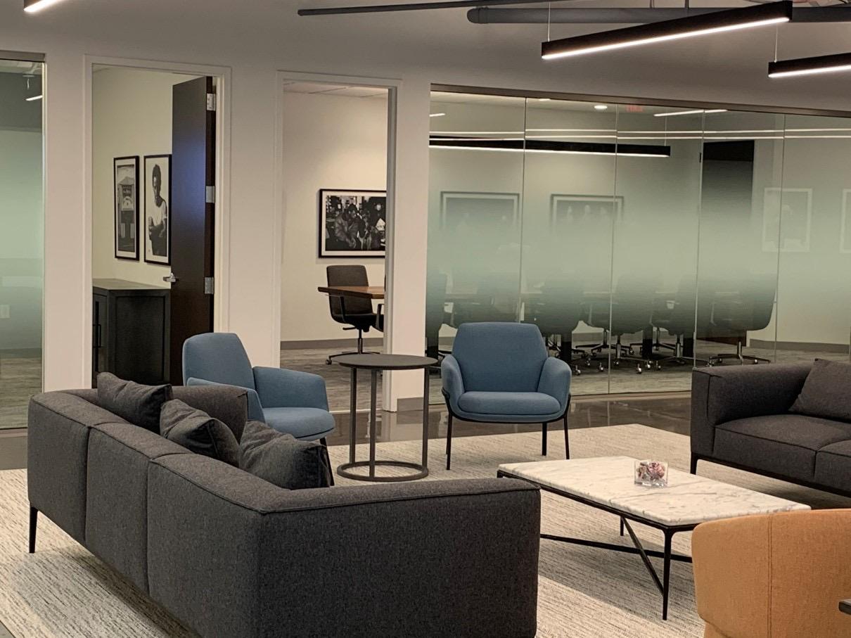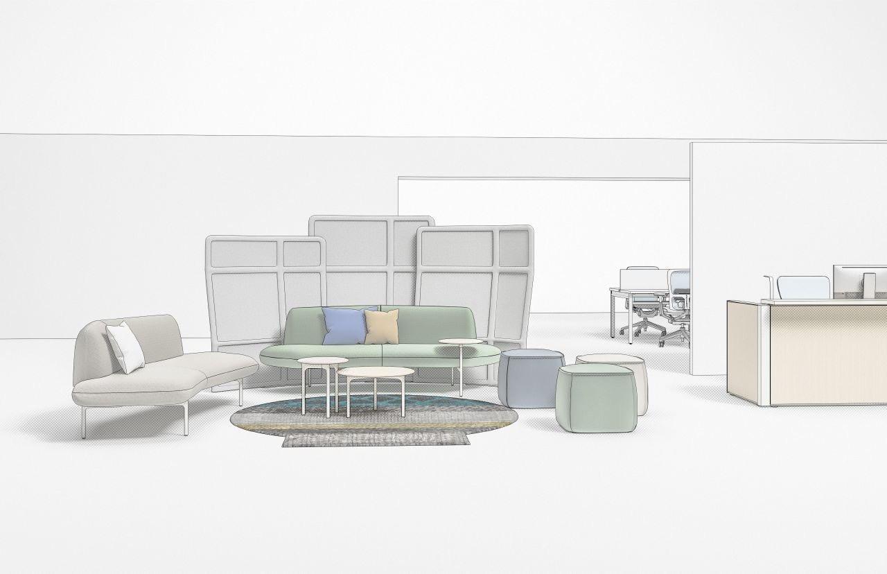 • Increased integration of collaborative spaces into the soft seating at reception areas (for maximized use)