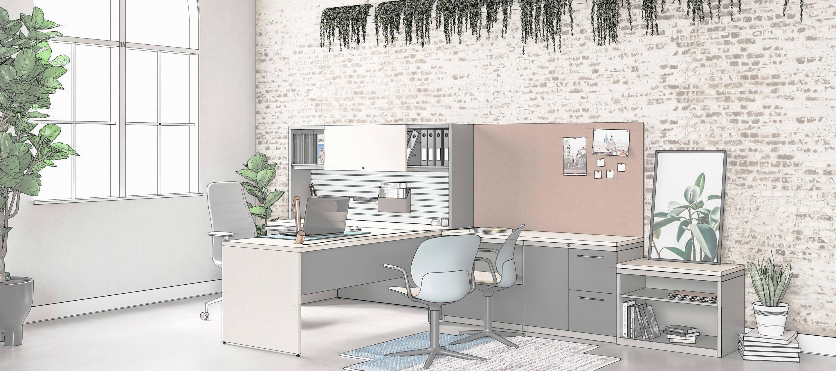 • Flexible storage options include wardrobes, lateral files, bookcases, and open cabinets