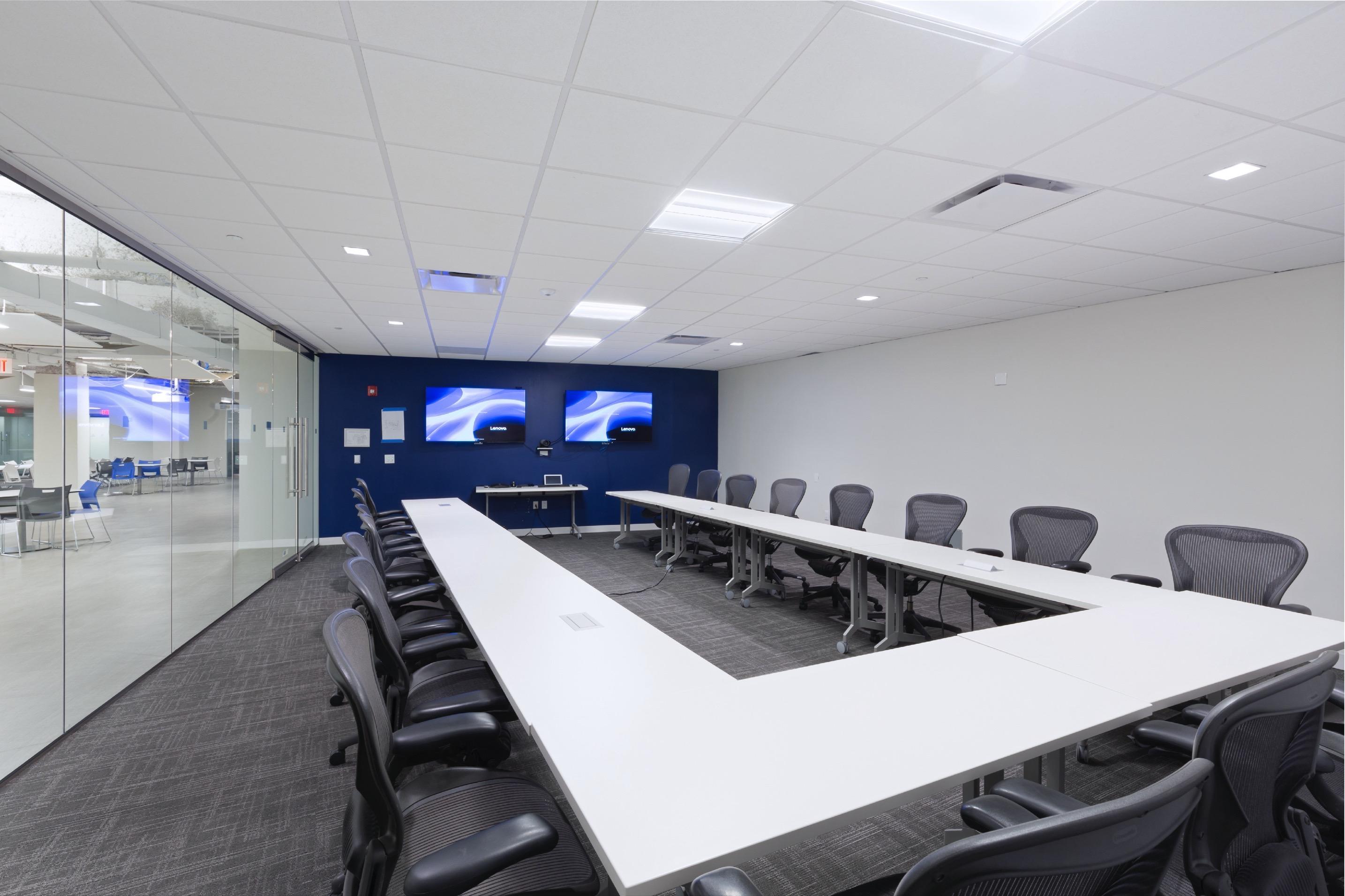 • Adjacent lounge areas can be integrated using folding walls adjacent reception spaces can be an open break -out collaboration area in the training room if operable walls are opened=