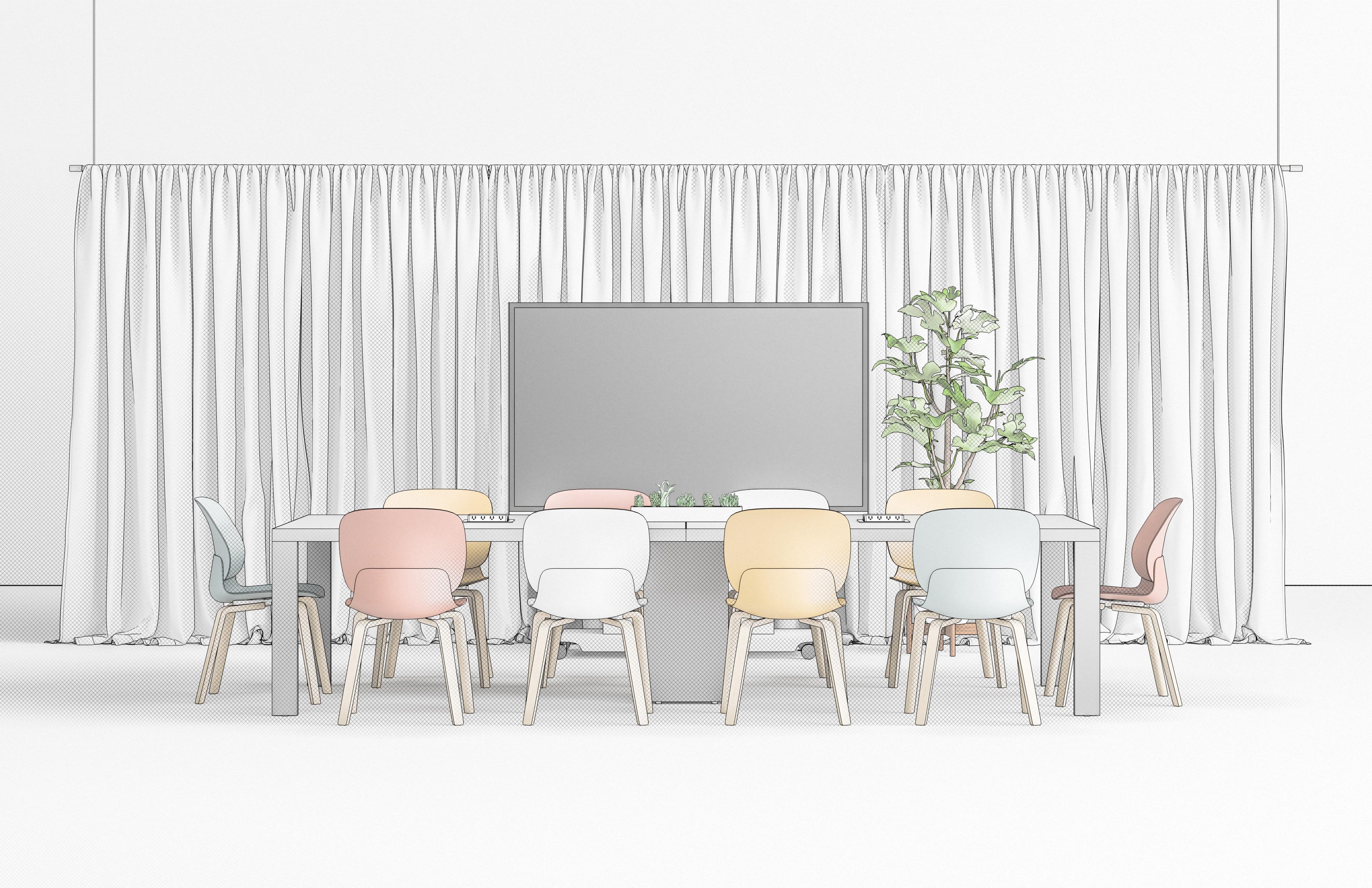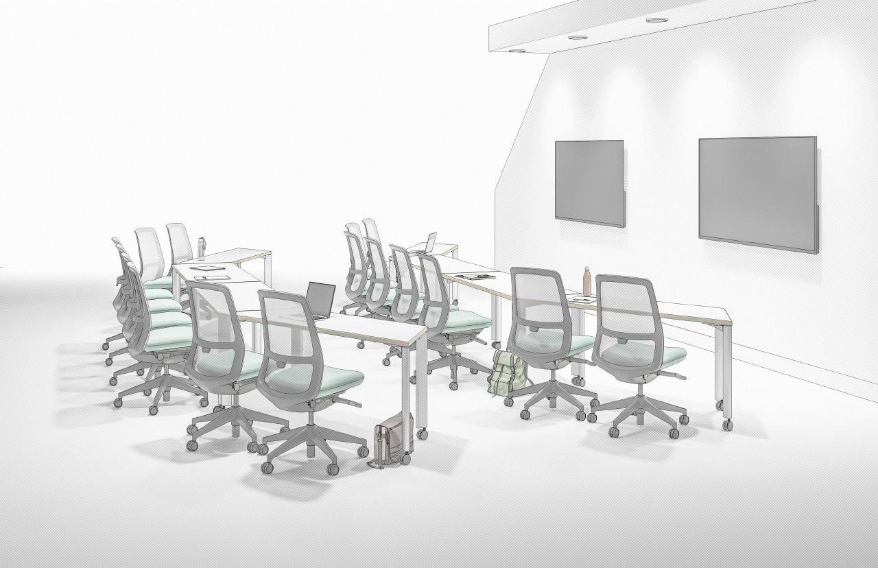 • Table placement at walls for zoom or screen -focused collaboration