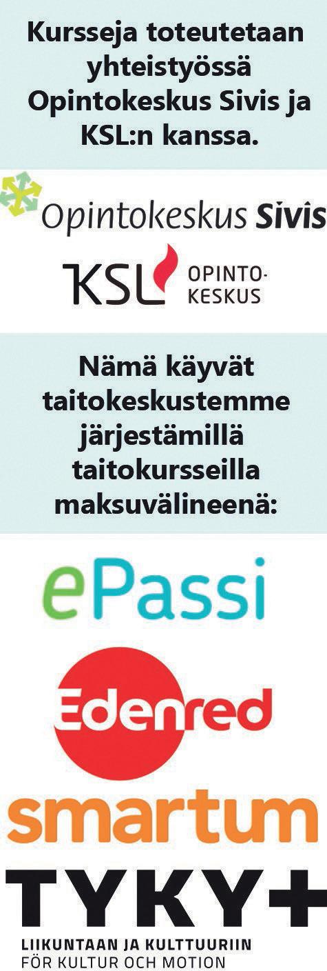 Vaasan taitokeskus, Pipsa 044-545 4071, vaasa@taitoep.fi
