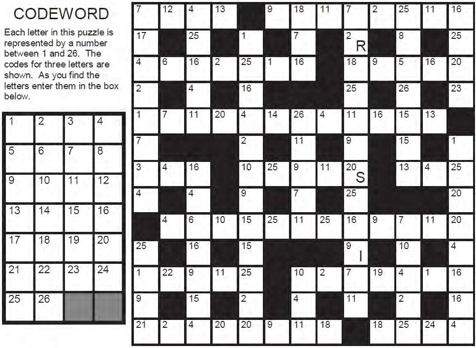 CODEWORD Hidden phrase: Honey is sweet but bees sting. French proverb.