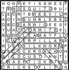 19 - Wordsearch; Insects