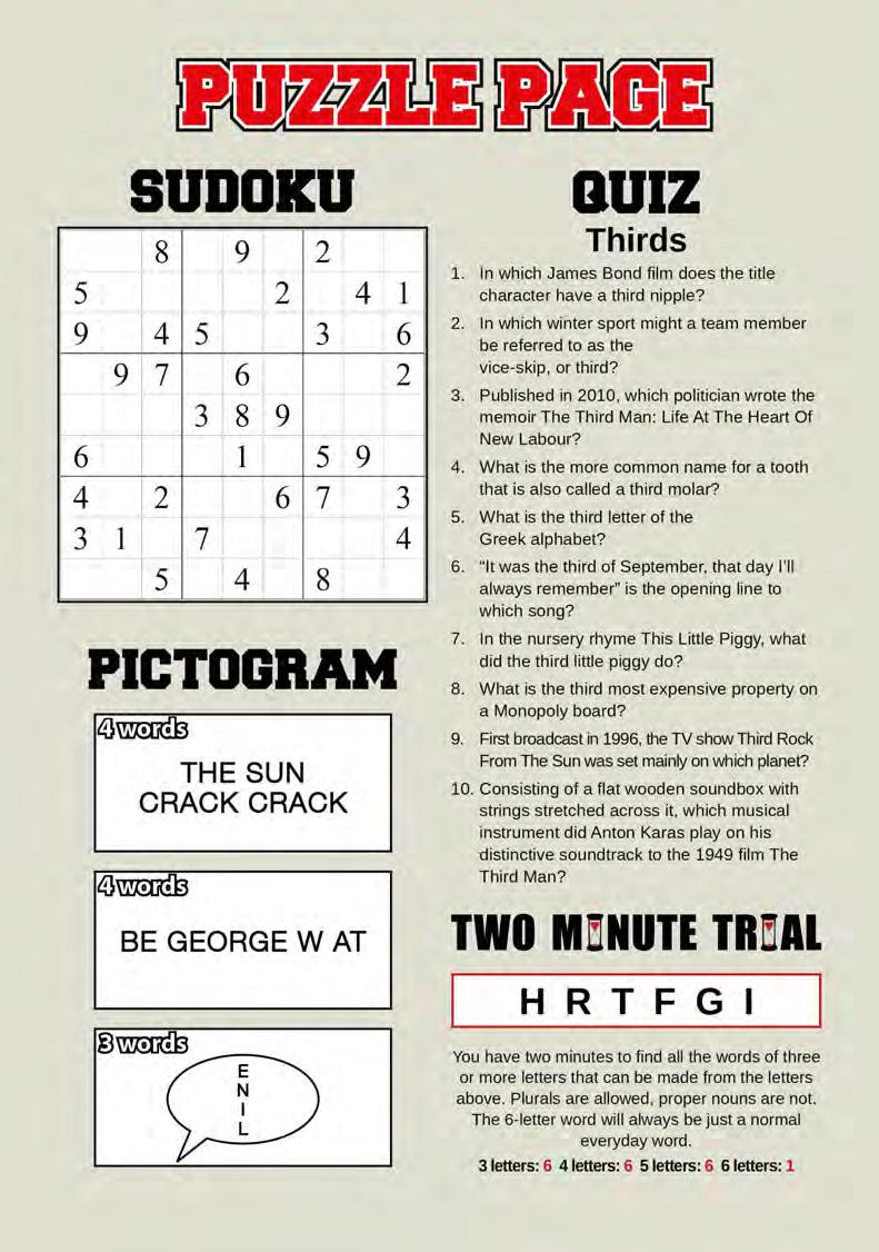Pictogram 36 Sudoku 36 Two Minute Trial 36 Quiz Answers 38 Quiz Thirds 36 Wordsearch 27