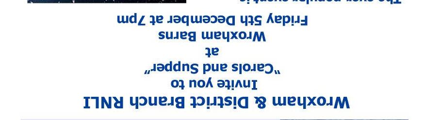 WROXHAM Our Christmas meeting will be on Wednesday 10th December at 7.30 pm at the Wroxham Church Hall. Our demonstrator will be David Wright his title “Let it Snow” It should be an enjoyable evening to put us in the mood for Christmas. Seasonal refreshments will be served. For further informationplease telephone 782075.
