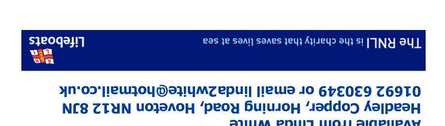 4,000 copies delivered every month to homes in Wroxham, Hoveton, Horning, Horstead, Badersfield & Coltishall 01603 717681 tracey@wacbook.co.uk www.wacbook.co.uk