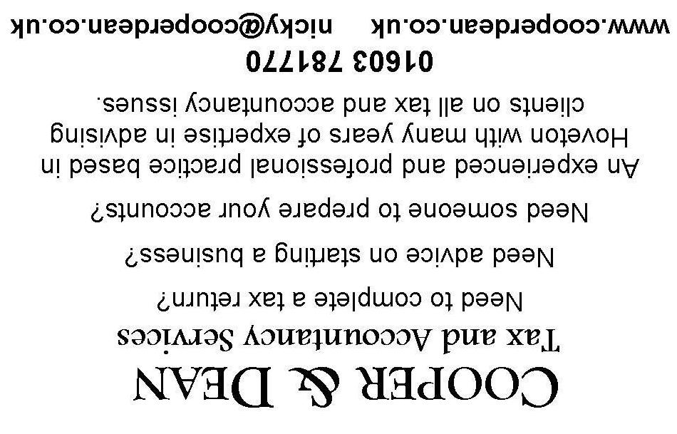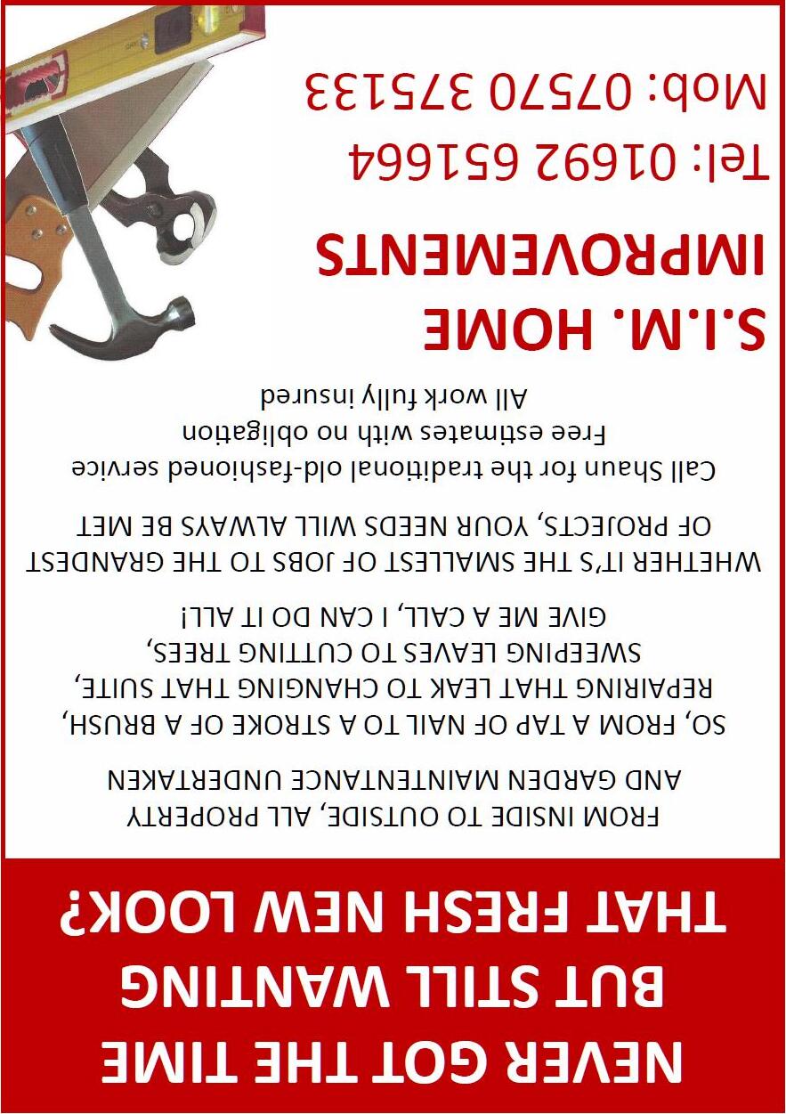 Should you require a professional-looking advert to be created we can create one for you. For regular advertisers we provide that service free-ofcharge!