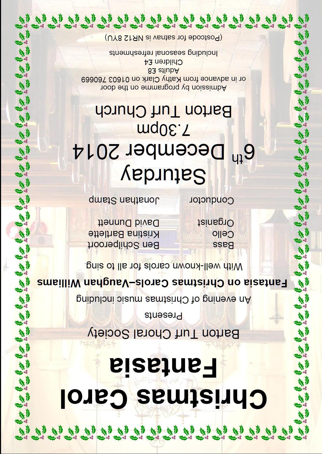 DENING CLUB – Friday 5th December, 7.30pm at Hoveton Village Hall. Simon White, from Peter Beale’s Roses, will be demonstrating Holly Wreath making. There will also be refreshments, a ra e and time for a chat. Visitors £2. Contact Pat 01603 782523 or Julian on 01603 782883.