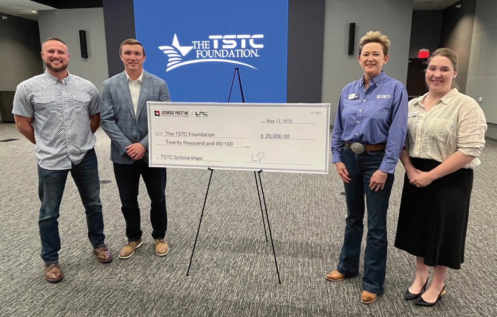 Lochridge Priest, an electrical, mechanical and plumbing contract company in Waco, announced its gift of $20,000 given through The TSTC Foundation. The gift will be used to provide scholarships to students in Texas State Technical College’s Electrical Construction, HVAC Technology and Plumbing and Pipefitting Technology programs at the Waco campus. The money was raised through the Lochridge Priest Crawfest held in late April at the The Backyard Bar Stage and Grill in Waco. n