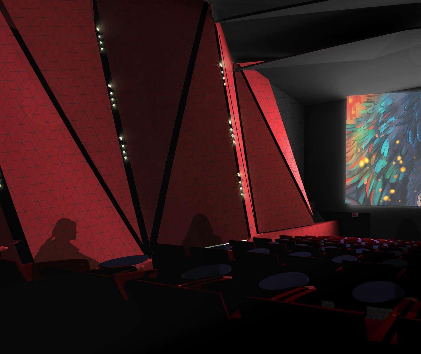 First the artists and their studios are programmatically placed in a way that both onlookers and visitors can admire the process of animation. In addition to this, spaces for learning are created alongside the artist’s studios, giving the visitor multiple ways of interacting with both the art and the artist, allowing both to integrate themselves as part of the exhibit. Secondly, the animation and their artifacts are placed in chronological order throughout, giving the visitor a taste of the history of animation to date, as well as access to multiple studios and styles of animation. Lastly, the movie theater, the culmination of the building’s program, floats above all creating the outward effect of a building suspended in the clouds, which is further accentuated by the geometrical texture on the facade.