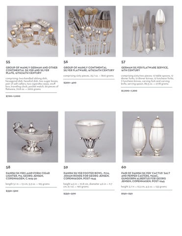 comprising: two-handled oblong dish, hexagonal dish, hexafoil dish, two sugar boxes, pair of salt cellars, two cigare!e cases, snuff box, traveling clock, pocket watch, 69 pieces of flatware, 70.8 oz. — 2202 grams