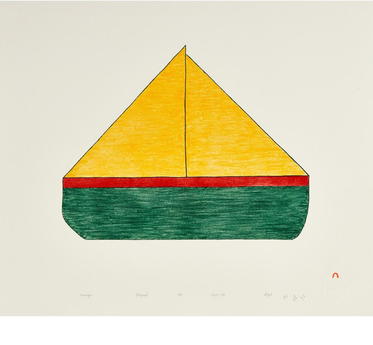 OUR JOURNEY BY SEA stonecut and stencil; titled, dated, and numbered 48/50; artist’s name in Roman and syllabics sheet 24.75 x 34.25 in — 62.9 x 87 cm