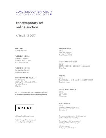 INSIDE&BACK&COVER All lots in the auction may be viewed online at ConcreteContemporaryArt.Waddingtons.ca