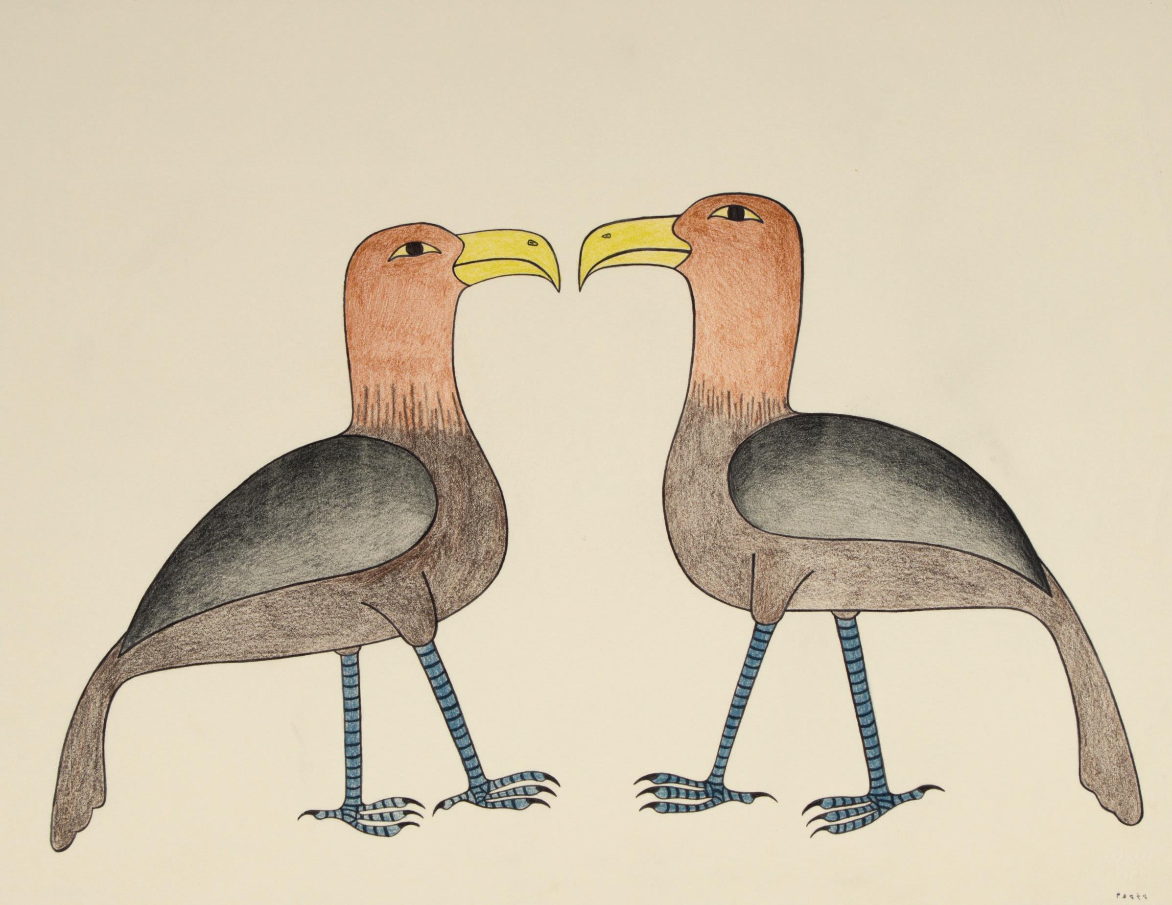 Early drawings by Kenojuak are rare to market. This drawing dating circa 1960 is from the first years of her career as a graphic artist, and comes from the collection of Terry Ryan, art advisor and general manager of the West Baffin Co-operative (WBEC). Ryan worked closely with most of the early Kinngait artists.