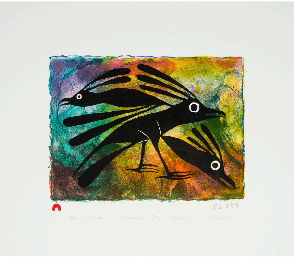 RAVEN SILHOUETTE IV, 2012 lithograph; titled, dated and numbered 46/50; artist’s name in Roman and syllabics; unframed sheet 14 x 16 in — 35.6 x 40.6 cm