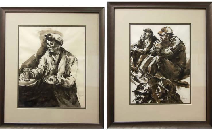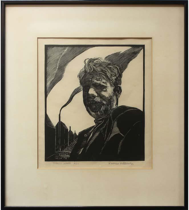 “THREE LUMBERJACKS” AND “UNTITLED” (MAN WITH TWO CANES) TWO ETCHINGS; FORMER - SIGNED LOWER RIGHT; SIGNED AND DATED 19/11, 1932 IN PLATE LOWER LEFT (Plate, 8” x 6.3”); LATTER - SIGNED LOWER RIGHT; SIGNED AND DATED 1912 IN PLATE LOWER LEFT (Plate, 8.8” x 7”)