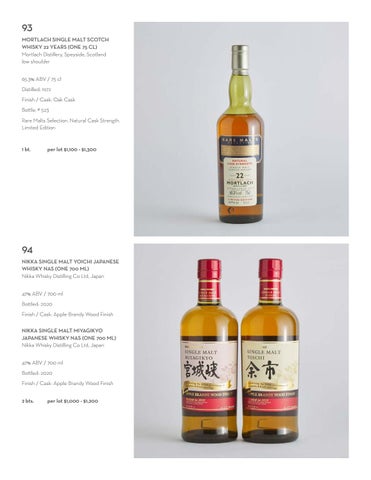 94 NIKKA SINGLE MALT YOICHI JAPANESE WHISKY NAS (ONE 700 ML) Nikka Whisky Distilling Co Ltd, Japan 47% ABV / 700 ml Bottled: 2020 Finish / Cask: Apple Brandy Wood Finish NIKKA SINGLE MALT MIYAGIKYO JAPANESE WHISKY NAS (ONE 700 ML) Nikka Whisky Distilling Co Ltd, Japan 47% ABV / 700 ml Bottled: 2020 Finish / Cask: Apple Brandy Wood Finish 2 bts.
