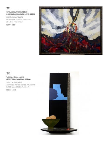 30 WILLIAM (BILL) LAING (SCOTTISH-CANADIAN, B.1944) VIEW / AT THE TABLE ACRYLIC & WOOD; SIGNED, TITLED AND DATED 1990 VERSO (29” x 15” x 8”) $300 — 400