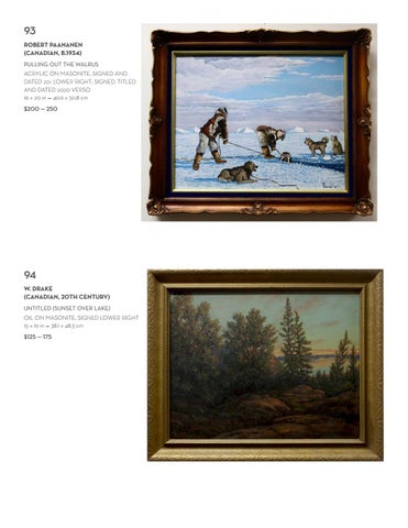 93 ROBERT PAANANEN (CANADIAN, B.1934) PULLING OUT THE WALRUS ACRYLIC ON MASONITE; SIGNED AND DATED 20- LOWER RIGHT; SIGNED, TITLED AND DATED 2020 VERSO 16 x 20 in — 40.6 x 50.8 cm $200 — 250