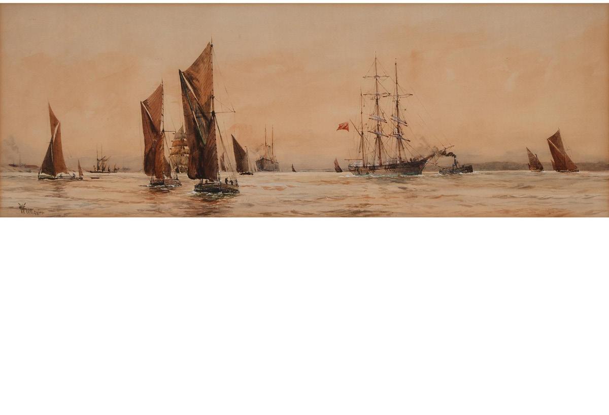 WILLIAM G. WHITTINGTON (ACTIVE 1904-1914), BRITISH BOATS ON THE WATER watercolour on paper; signed lower left sight 17 ins x 36 ins; 26.2 cms x 74.4 cms