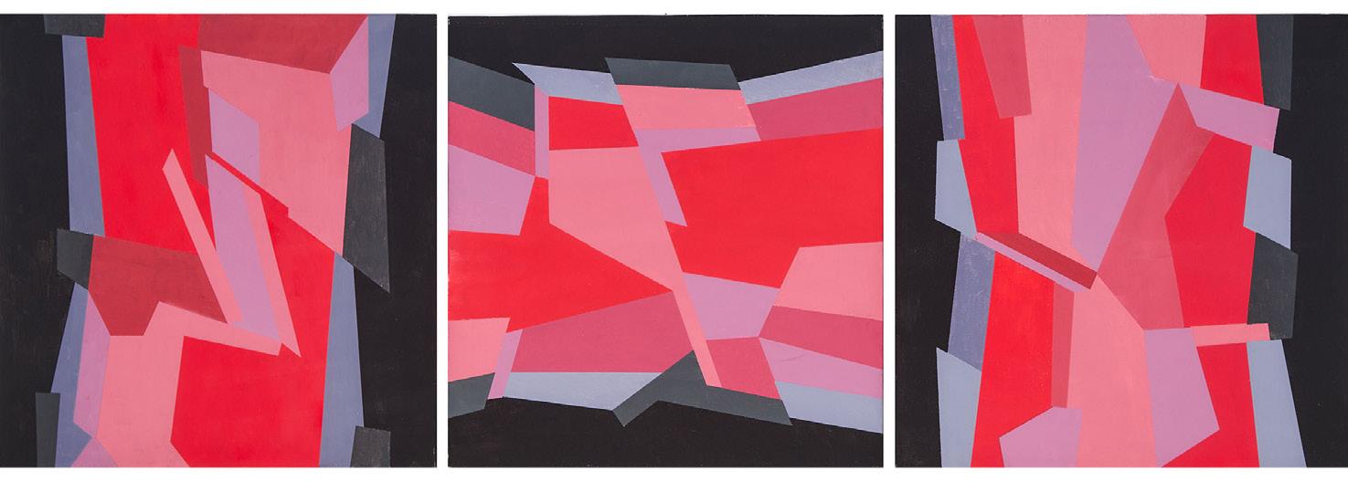 UNTITLED TRIPTYCH, 2019 acrylic on canvas; each panel signed and dated “19” verso overall 53.1 ins x 17.7 ins; 135 cms x 45 cms