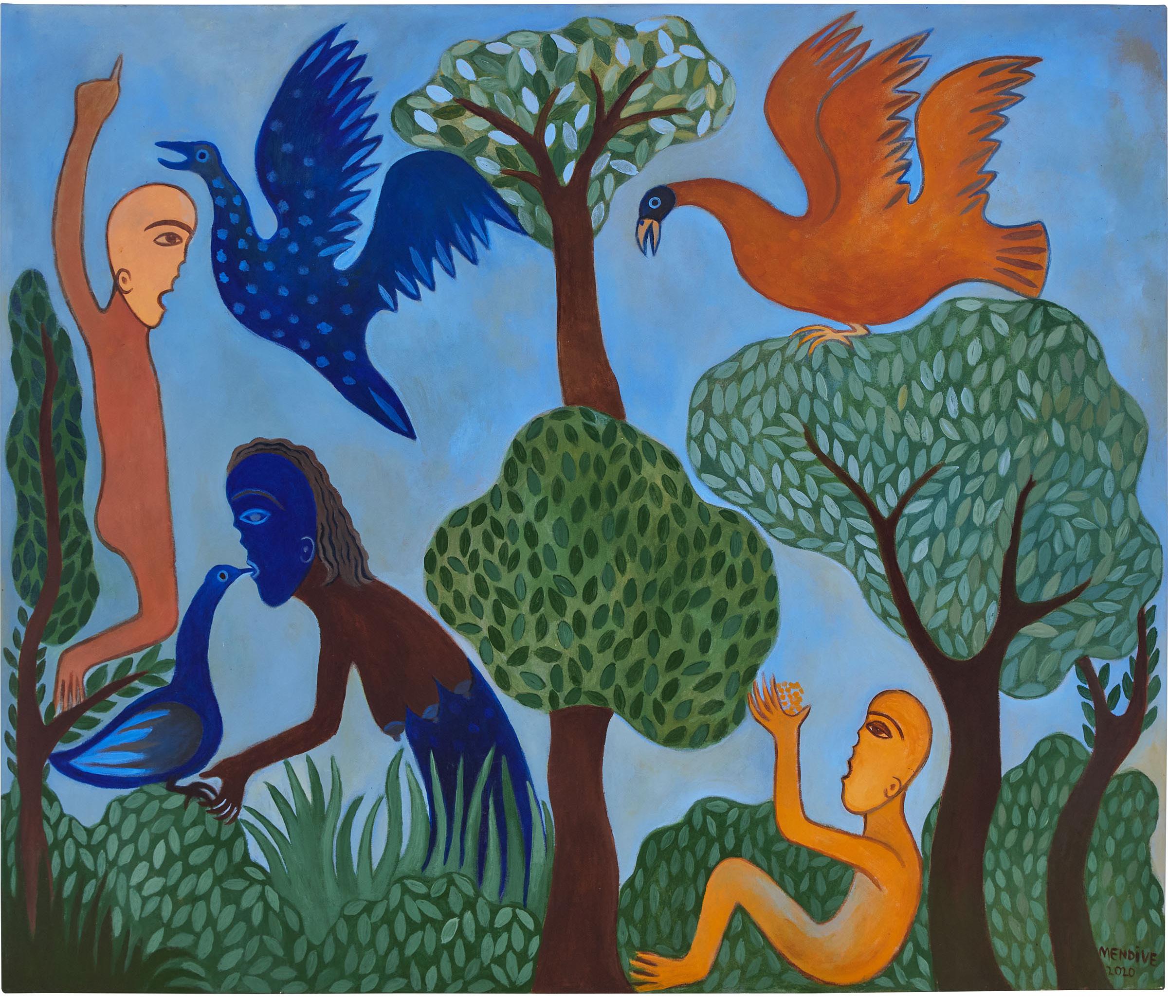 Mendive’s art is a mix of African, Spanish, and Indigenous influences, making him one of the most important contemporary Cuban artists. His rich cultural background is conveyed in his work, bringing a contemporary insight into the history of slavery and African mythologies as they transformed the Caribbean Islands.