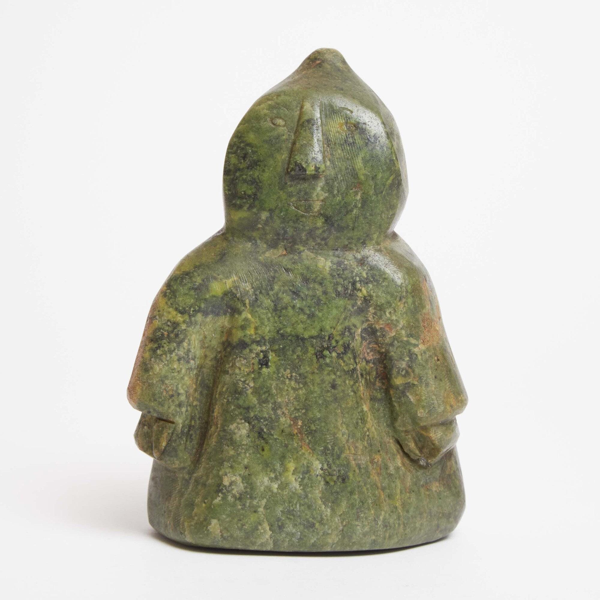 stone; signed in syllabics and accompanied by a “Canada Eskimo Art” tag inscribed “Judas Ullulaq / Gjoa Haven / 01 OCT 93 / MAN”