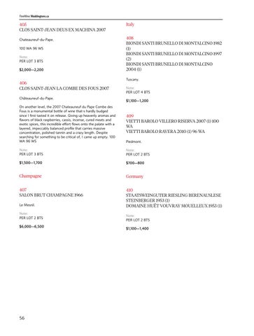 405 CLOS SAINT-JEAN DEUS EX MACHINA 2007 Chateauneuf-du-Pape. 100 WA 96 WS Note: PER LOT 3 BTS $2,000—2,200
