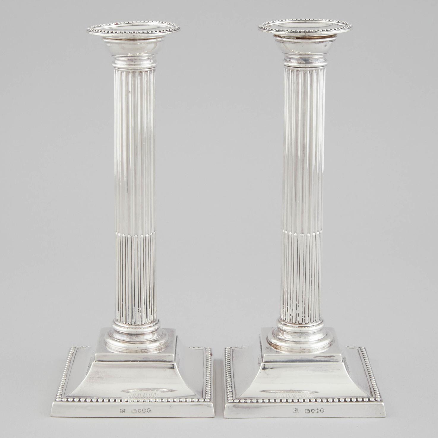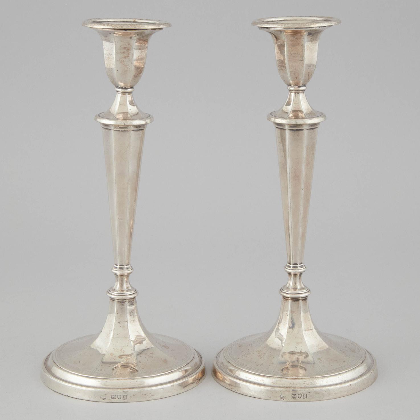 PAIR OF ENGLISH SILVER TABLE CANDLESTICKS, LAMBERT & CO., LONDON, 1912