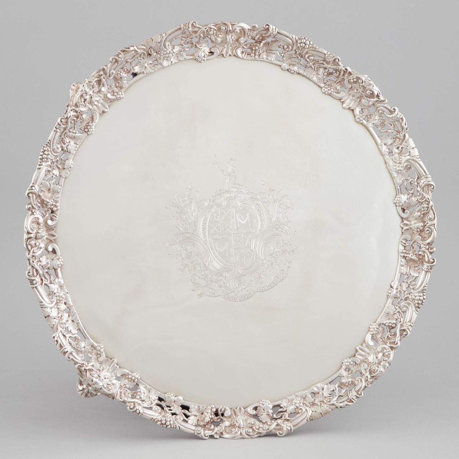 ENGLISH SILVER PIERCED CIRCULAR CAKE BASKET, WILLIAM HUTTON & SONS, SHEFFIELD, 1912