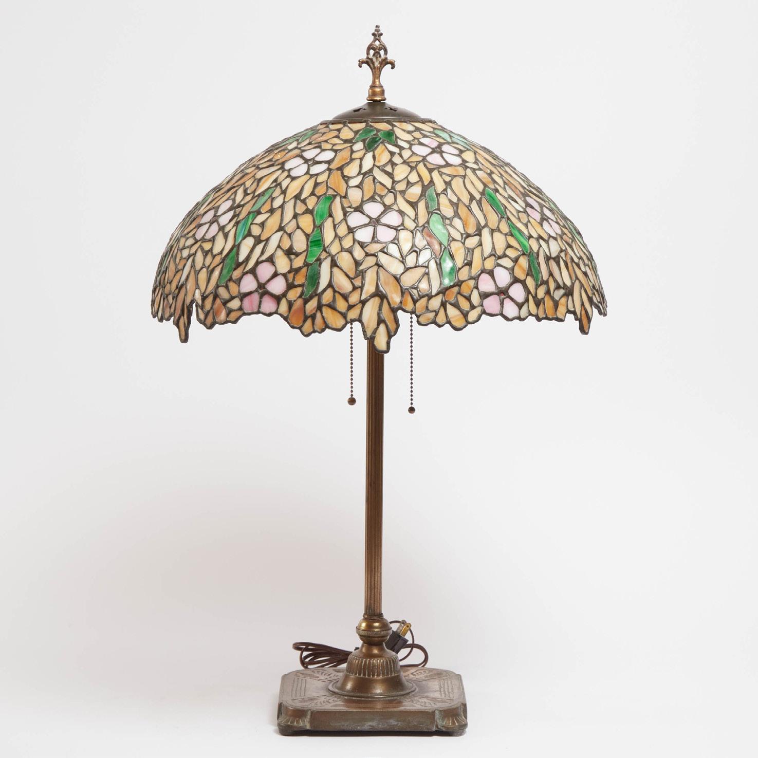 AMERICAN LEADED GLASS TABLE LAMP, ATTRIBUTED TO DUFFNER AND KIMBERLY, C.1920