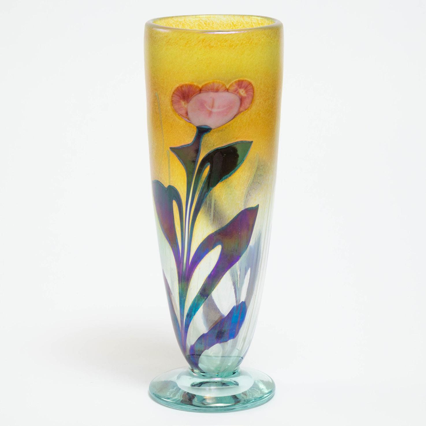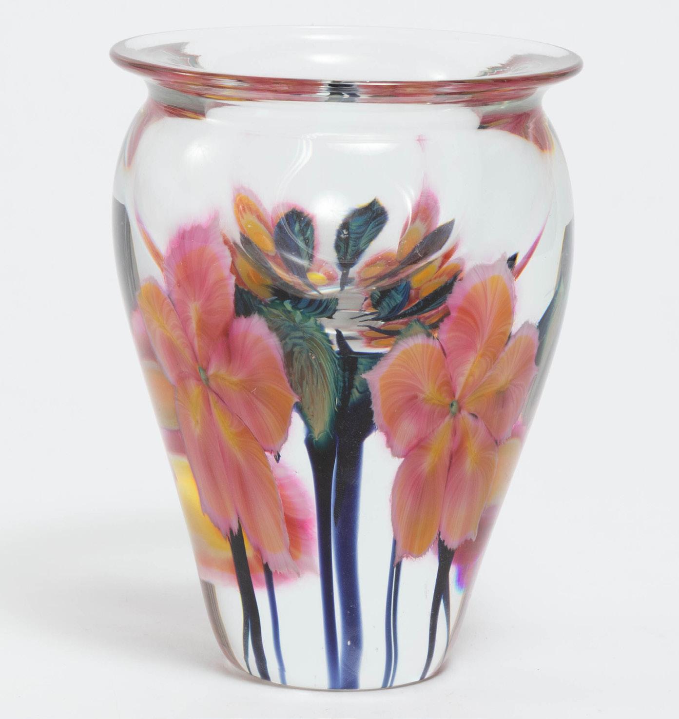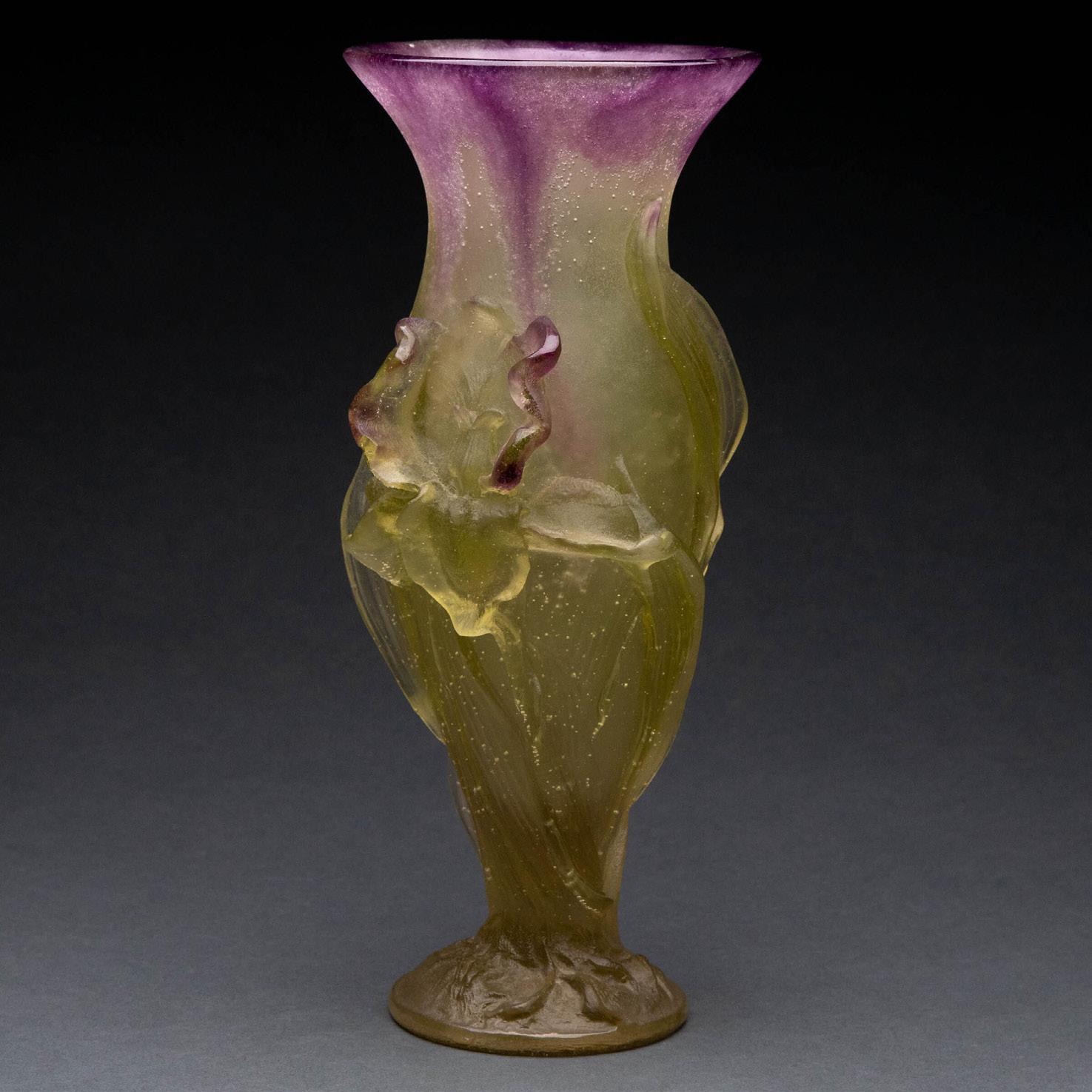 DAUM PÂTE DE VERRE GLASS ‘IRIS’ VASE, LATE 20TH CENTURY