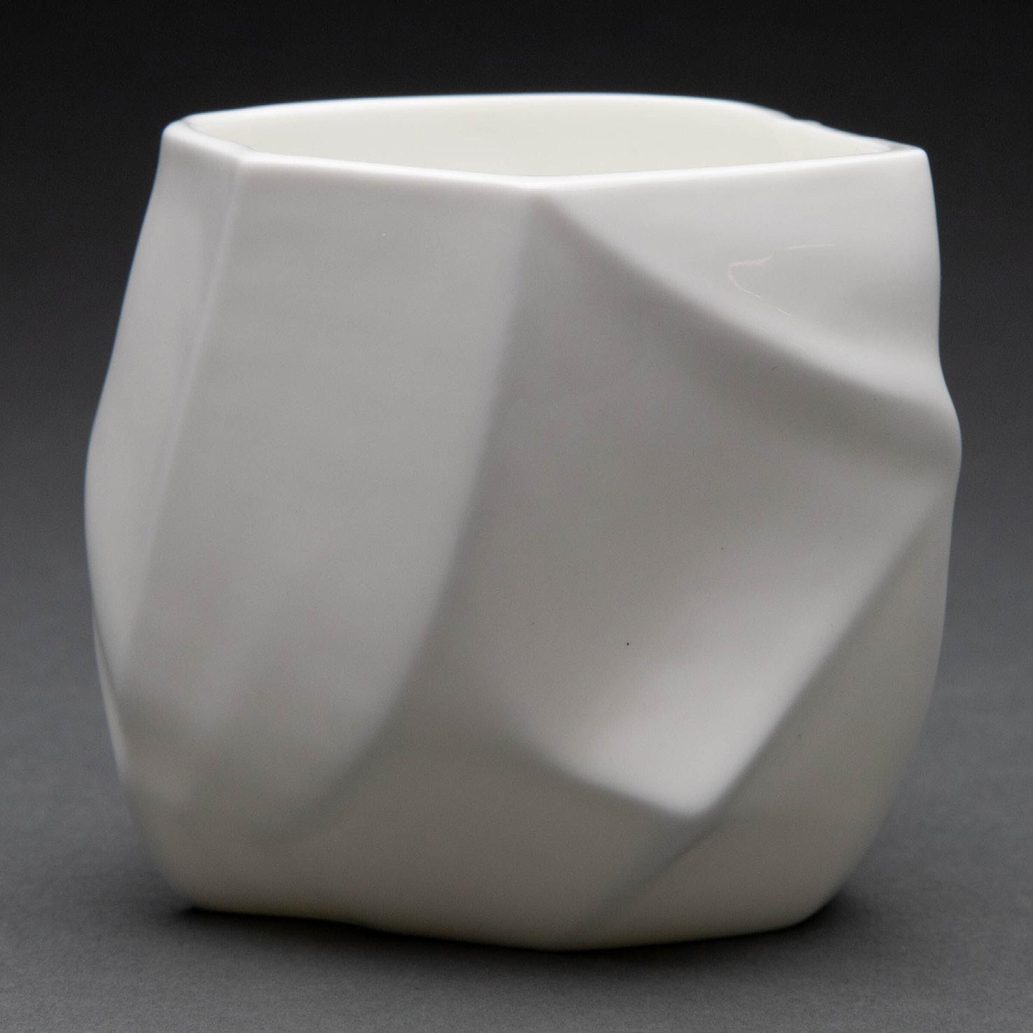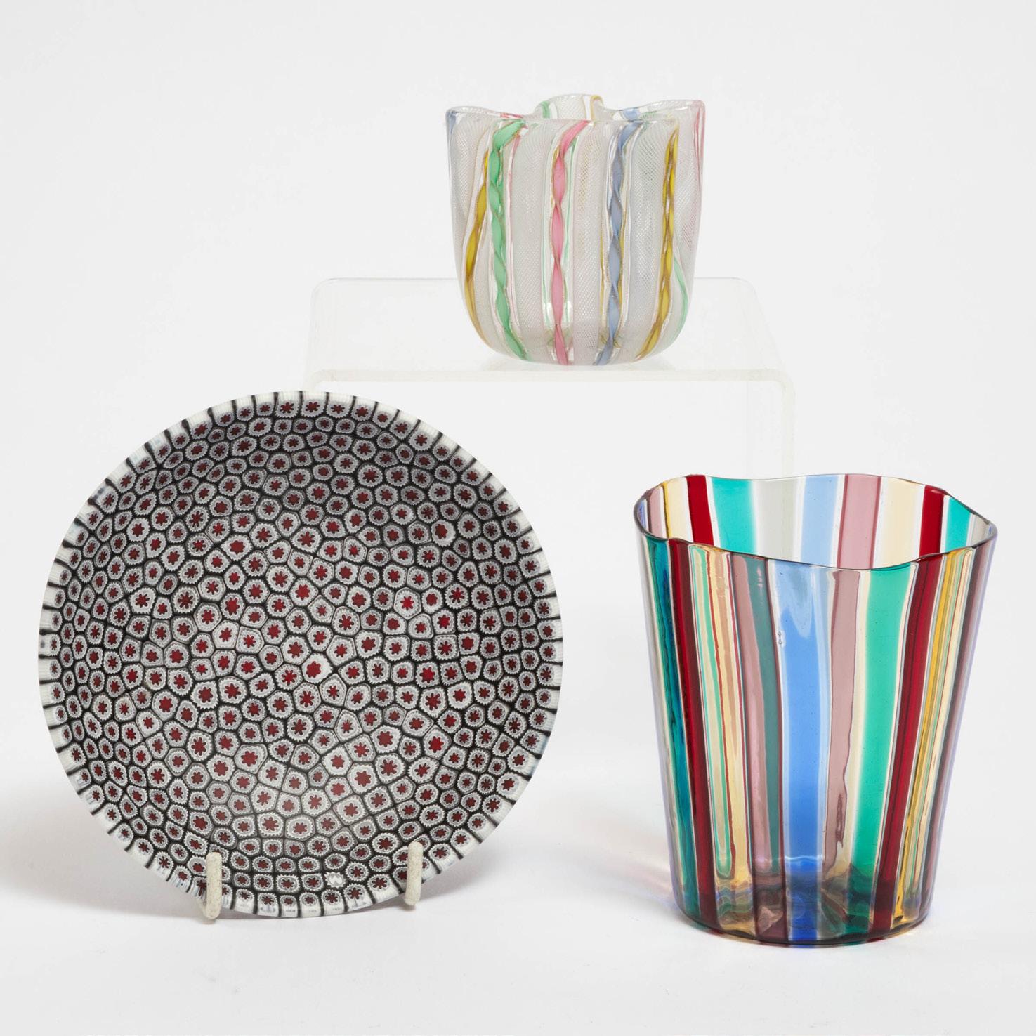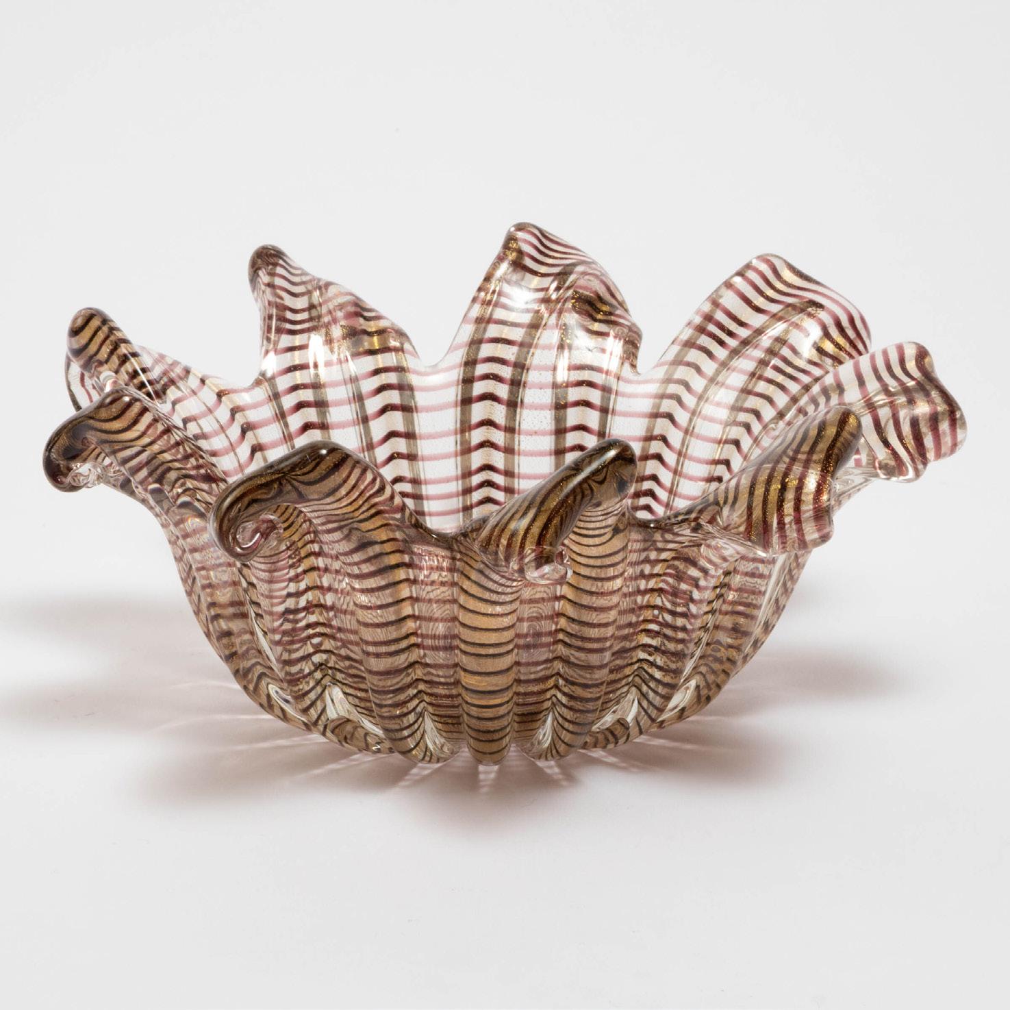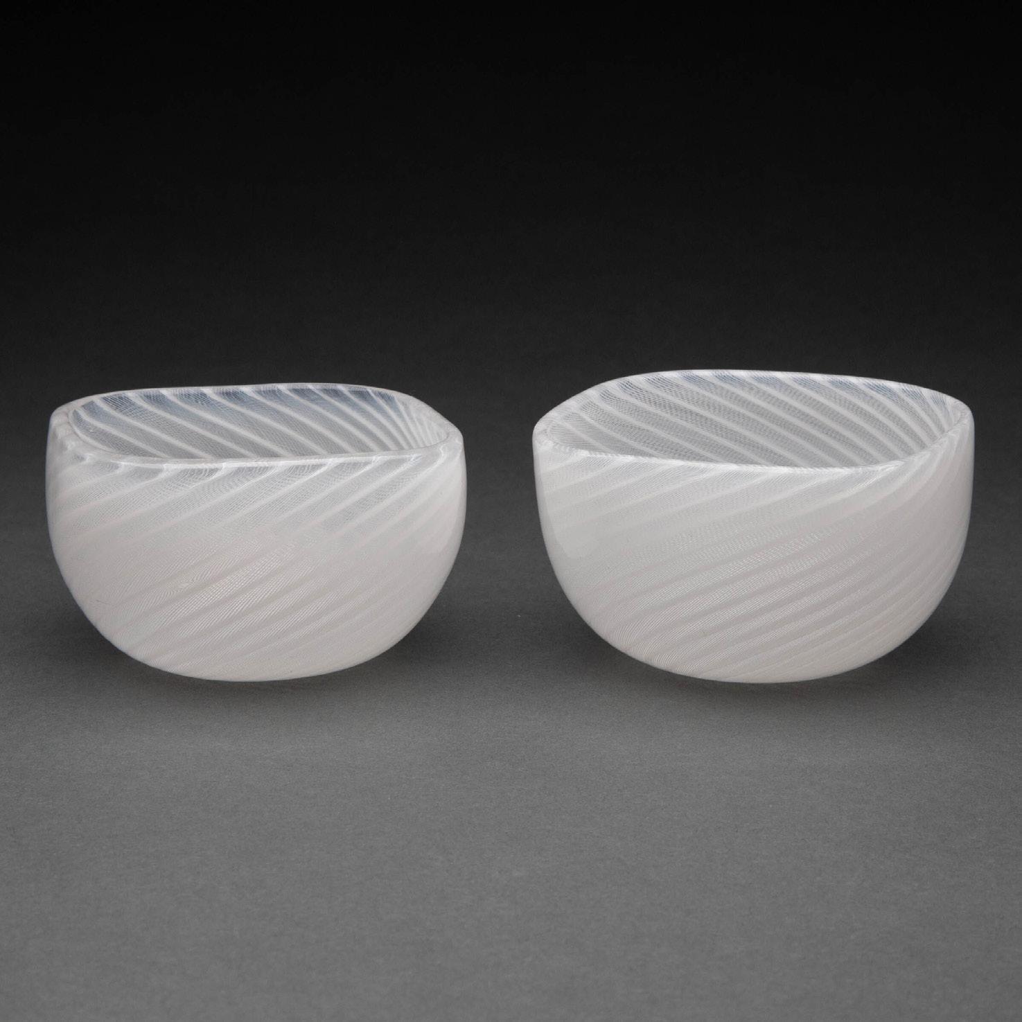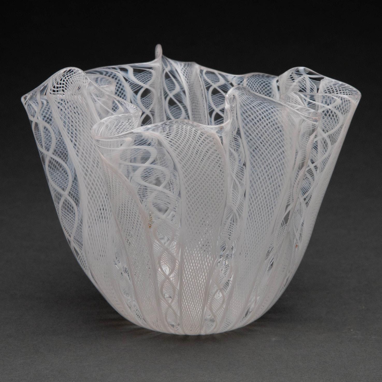VENINI WHITE ZANFIRICO GLASS FAZZOLETTO VASE, MID-20TH CENTURY