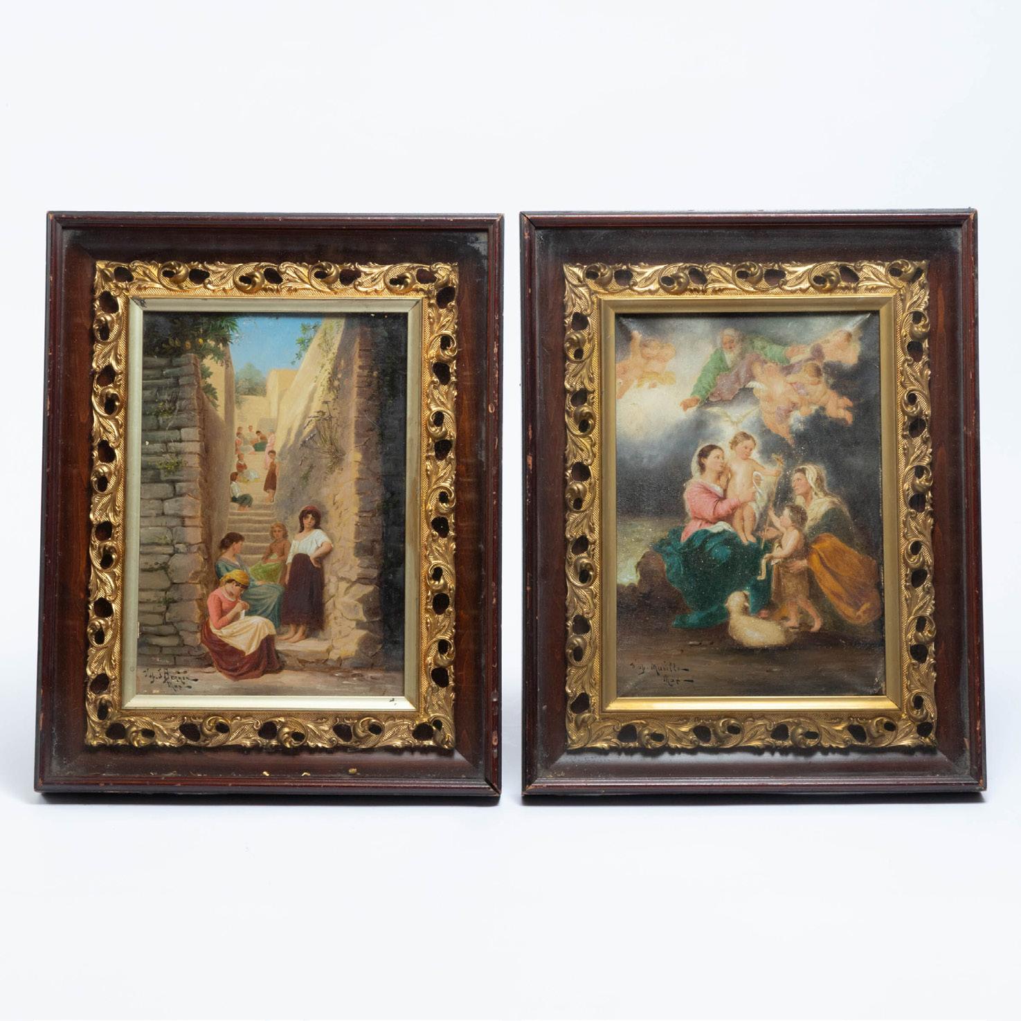 SOUVENIR PAINTINGS, 19TH CENTURY ‘A CORNER OF SHADE, CAPRI’ AFTER JEAN BENNER (1836-1909) & ‘THE SEVILLE VIRGIN’ AFTER BARTOLOMÉ ESTEBÁN MURILLO (1618-1682)