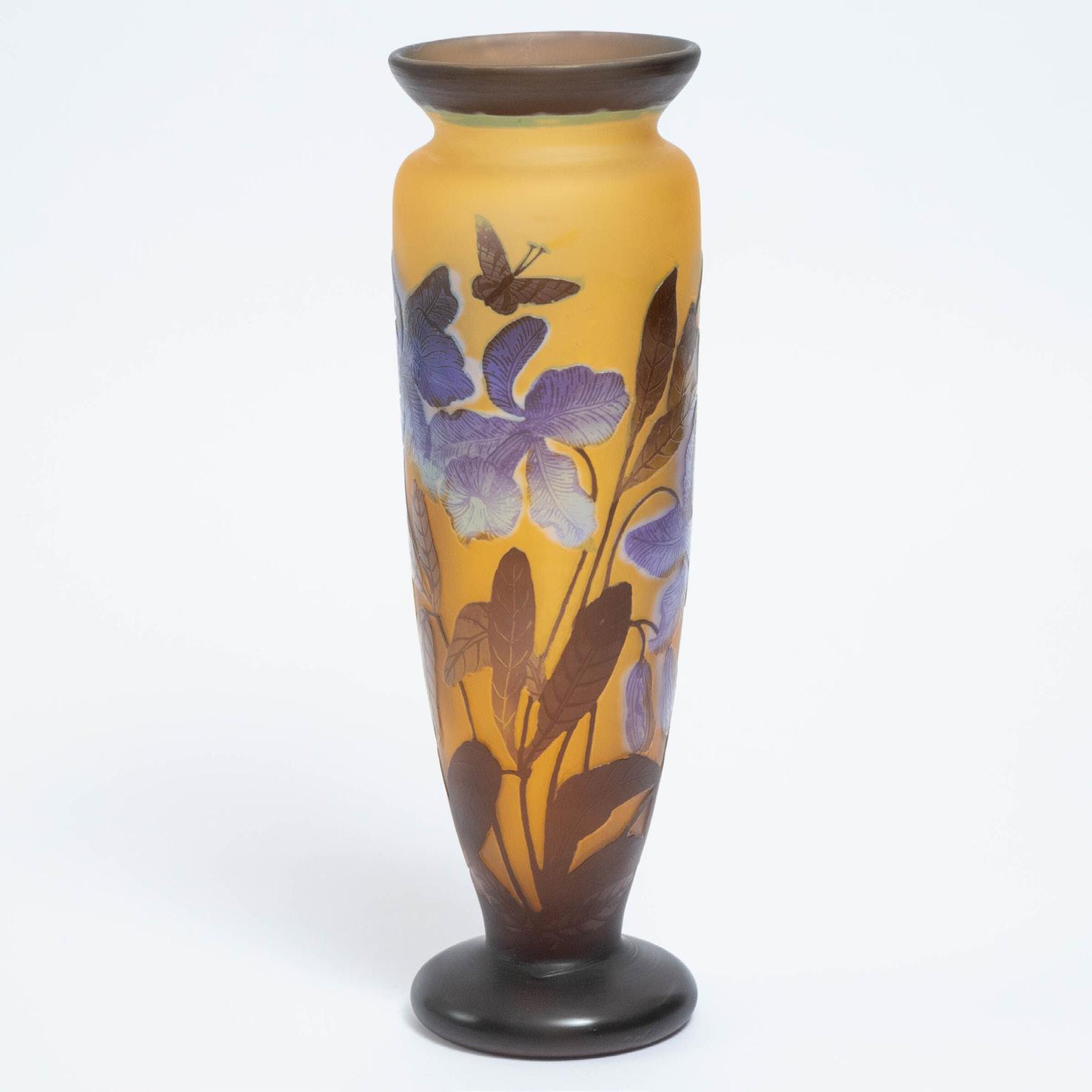 GALLÉ STYLE CAMEO GLASS IRIS AND BUTTERFLY VASE, 20TH CENTURY