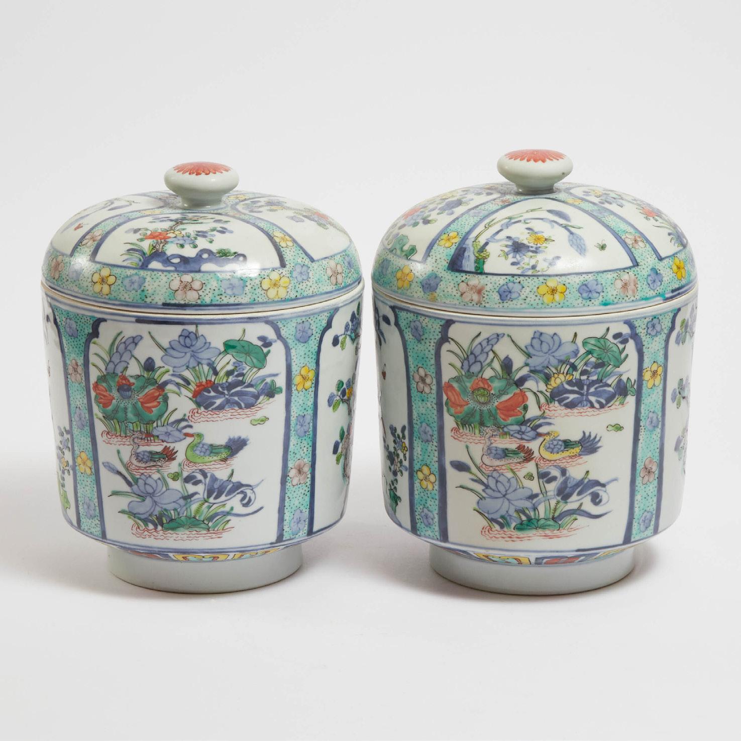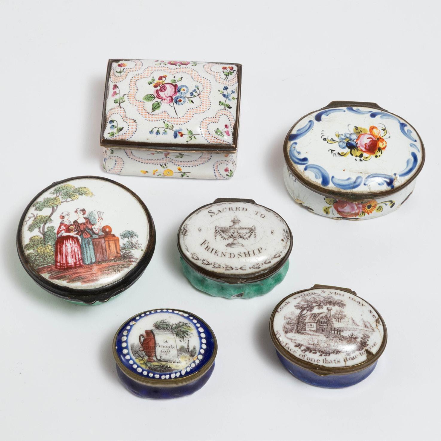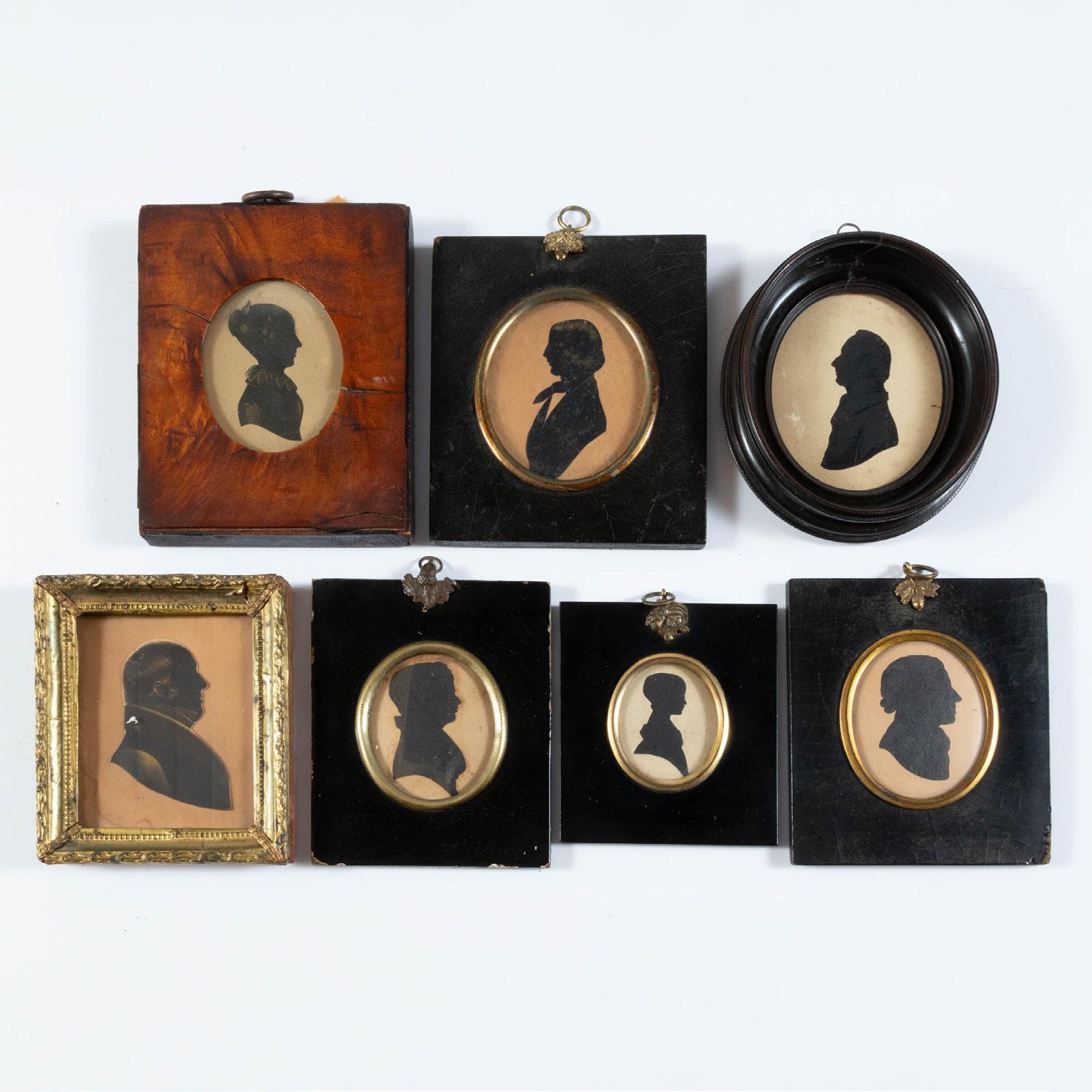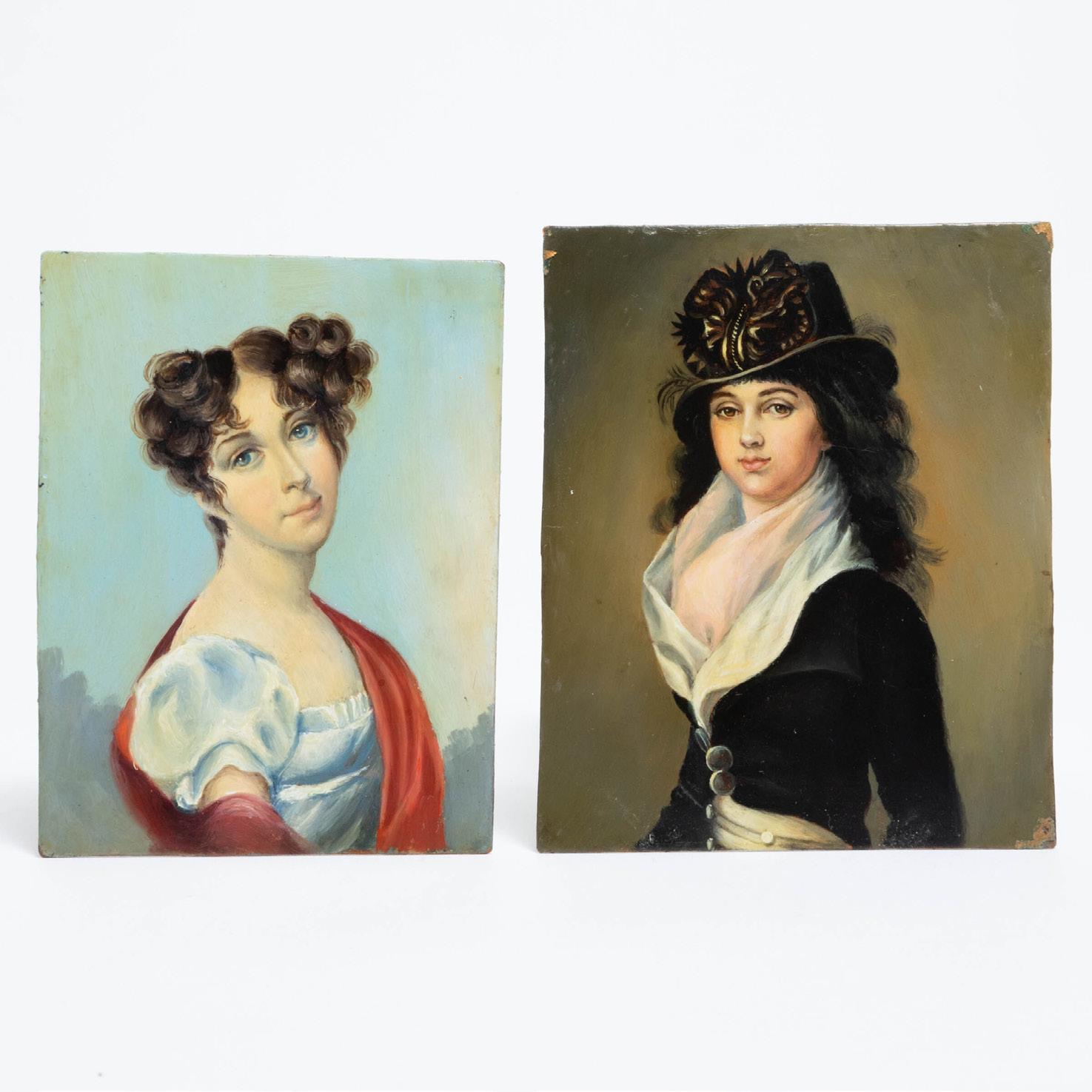 each an oil on canvas, signed d’après [the respective artist], and mahogany case framed under glass with pierced gilt slip, 17.5 x 13.75 in — 44.5 x 34.9 cm