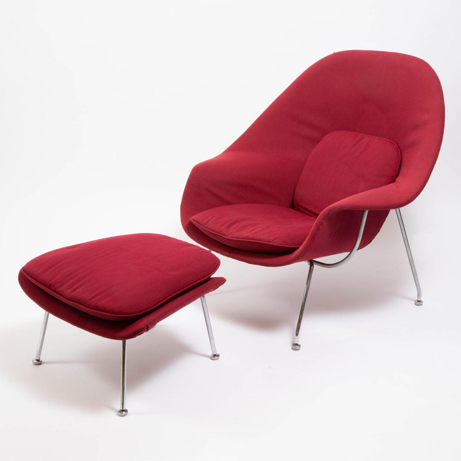 EERO SAARINEN WOMB CHAIR AND OTTOMAN with wool upholstered moulded fibreglass and chromed tubular steel frame, 37 x 36 x 36 in — 94 x 91.4 x 91.4 cm