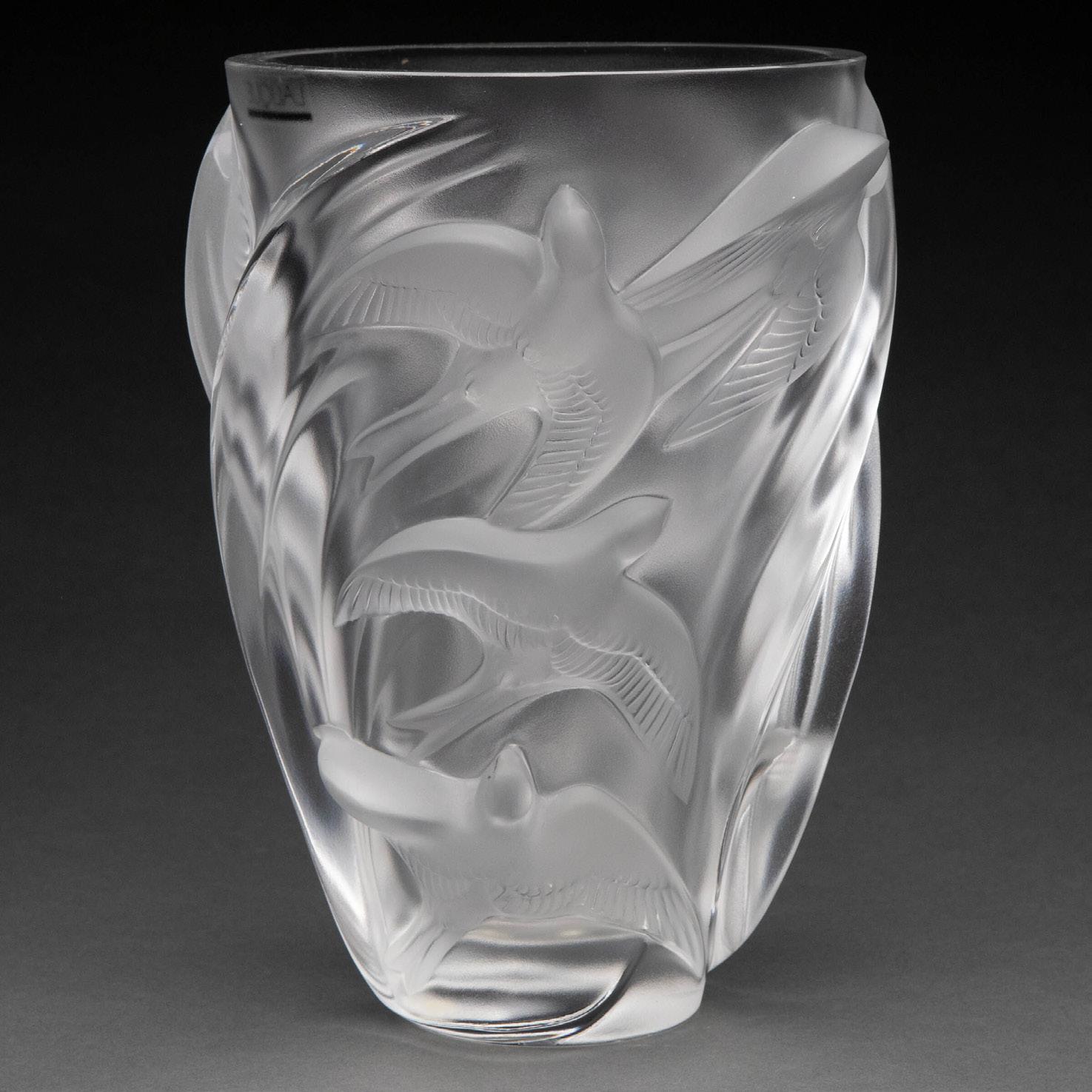 ‘MARTINETS’, LALIQUE MOULDED AND FROSTED GLASS VASE, POST-1978
