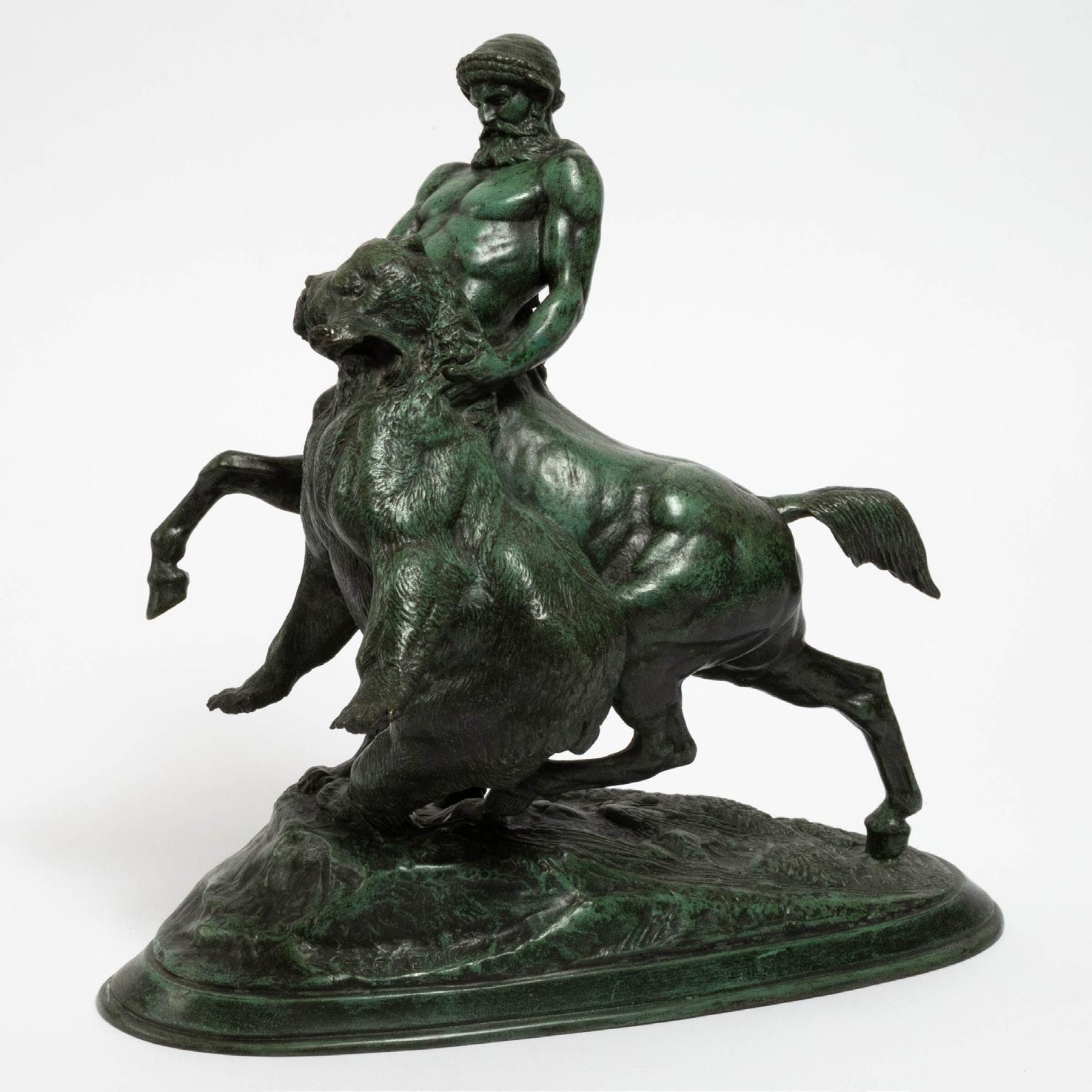 CENTAURE ET OURS (CENTAUR & BEAR) patinated bronze, signed in the mould, 20th century, height 14.6 in — 37 cm, length 15 in — 38.1 cm
