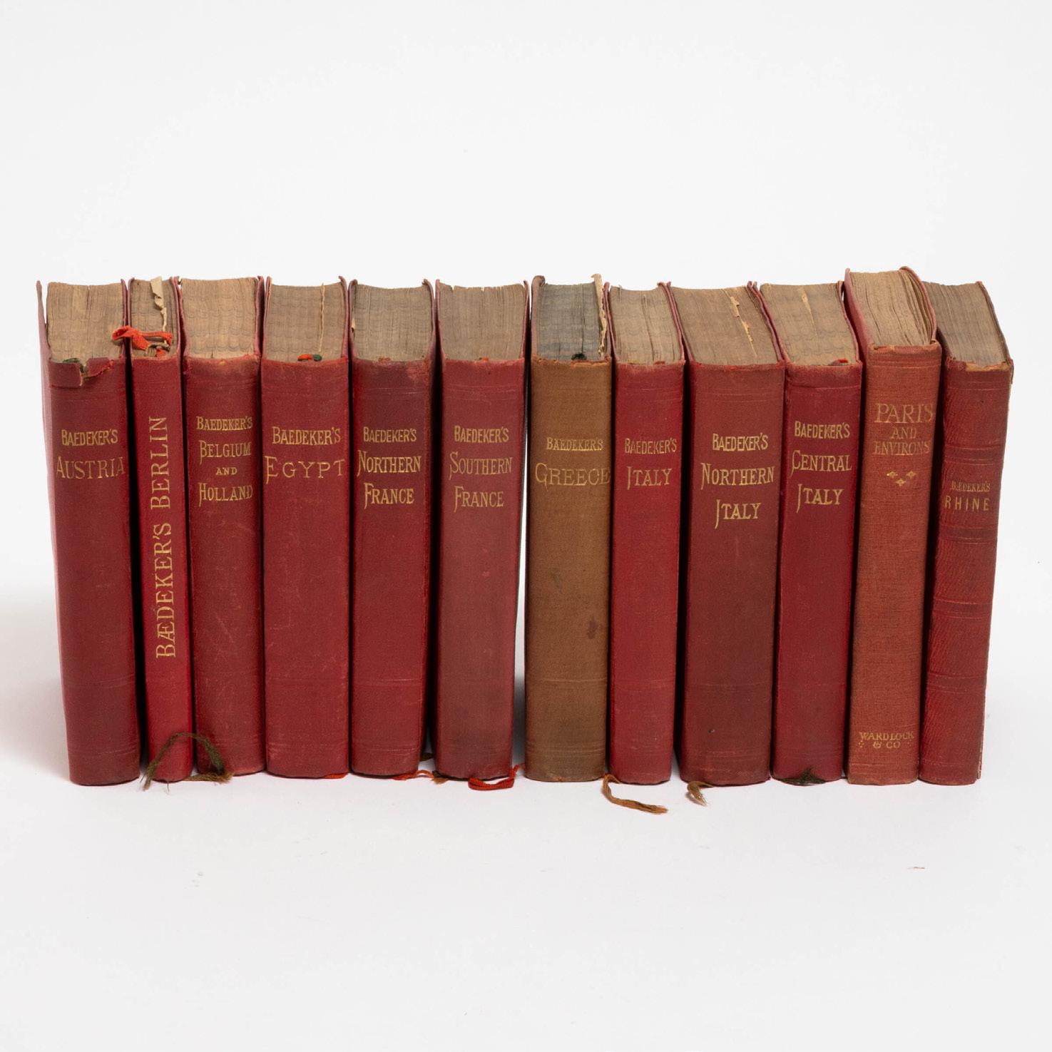 SET OF 12 MOSTLY BÆDEKER’S TRAVEL GUIDES, 1873-1912 each with multiple fold out maps, later editions profusely illustrated, each 6.3 x 4.5 in — 16 x 11.5 cm