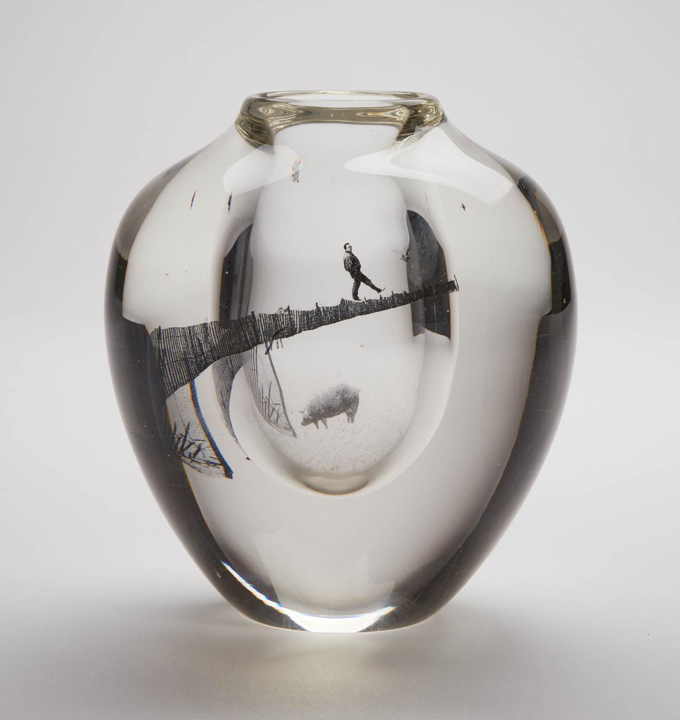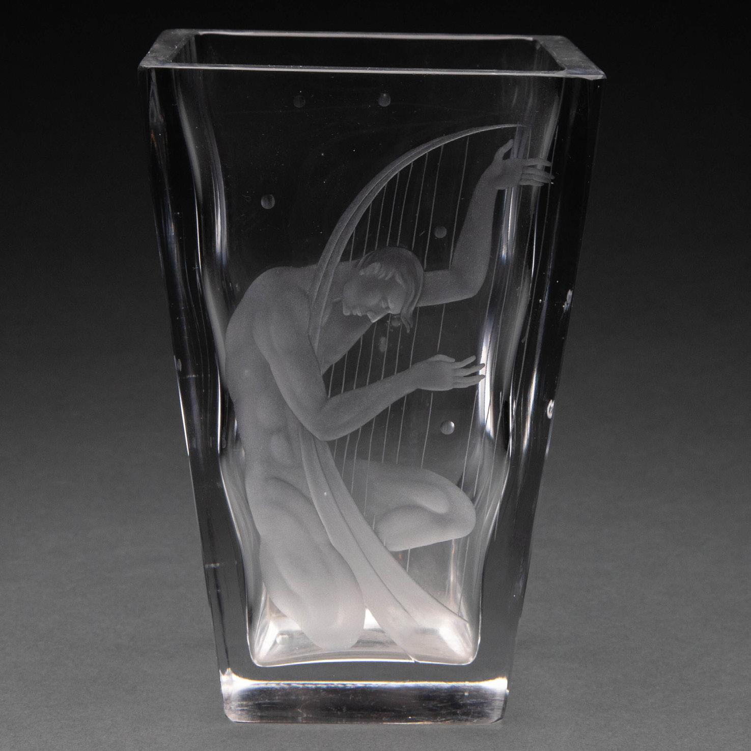 ORREFORS ENGRAVED GLASS VASE, VICKE LINDSTRAND, 20TH CENTURY