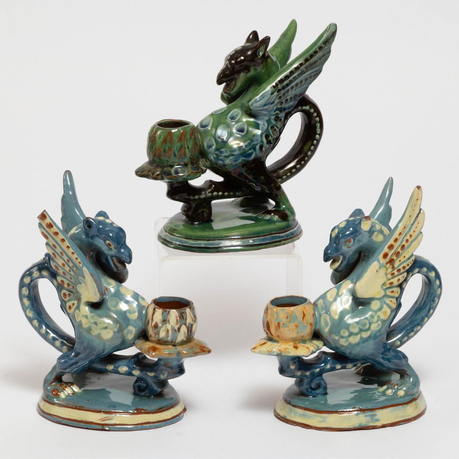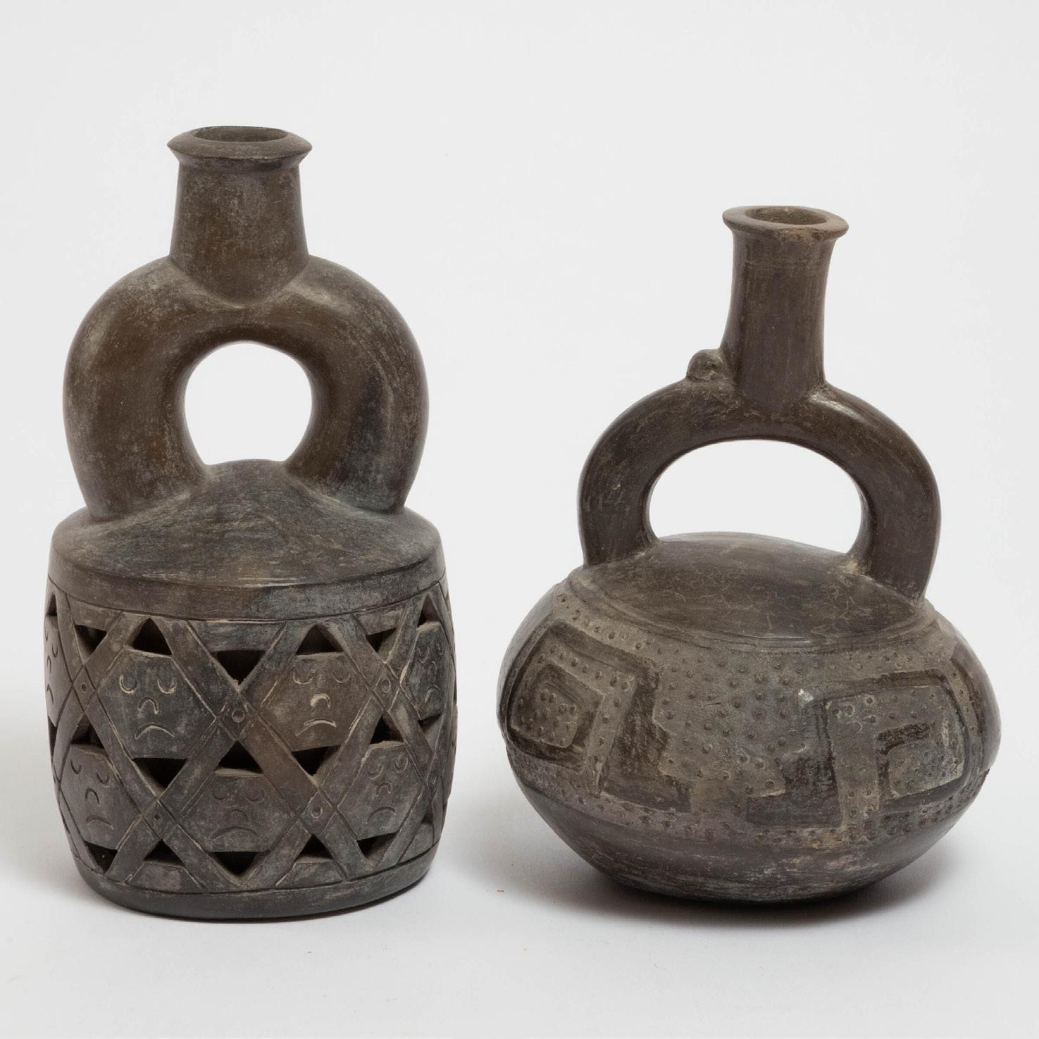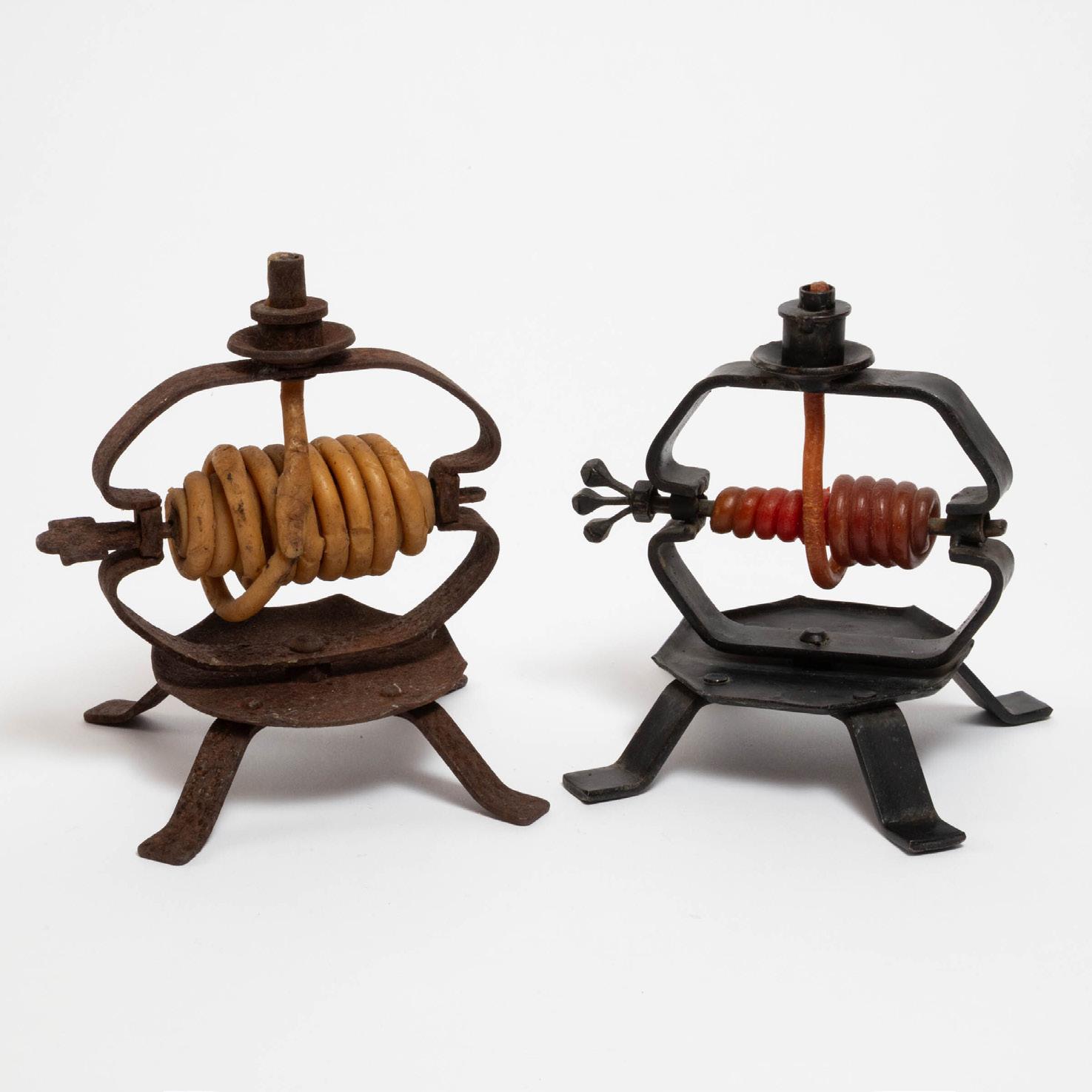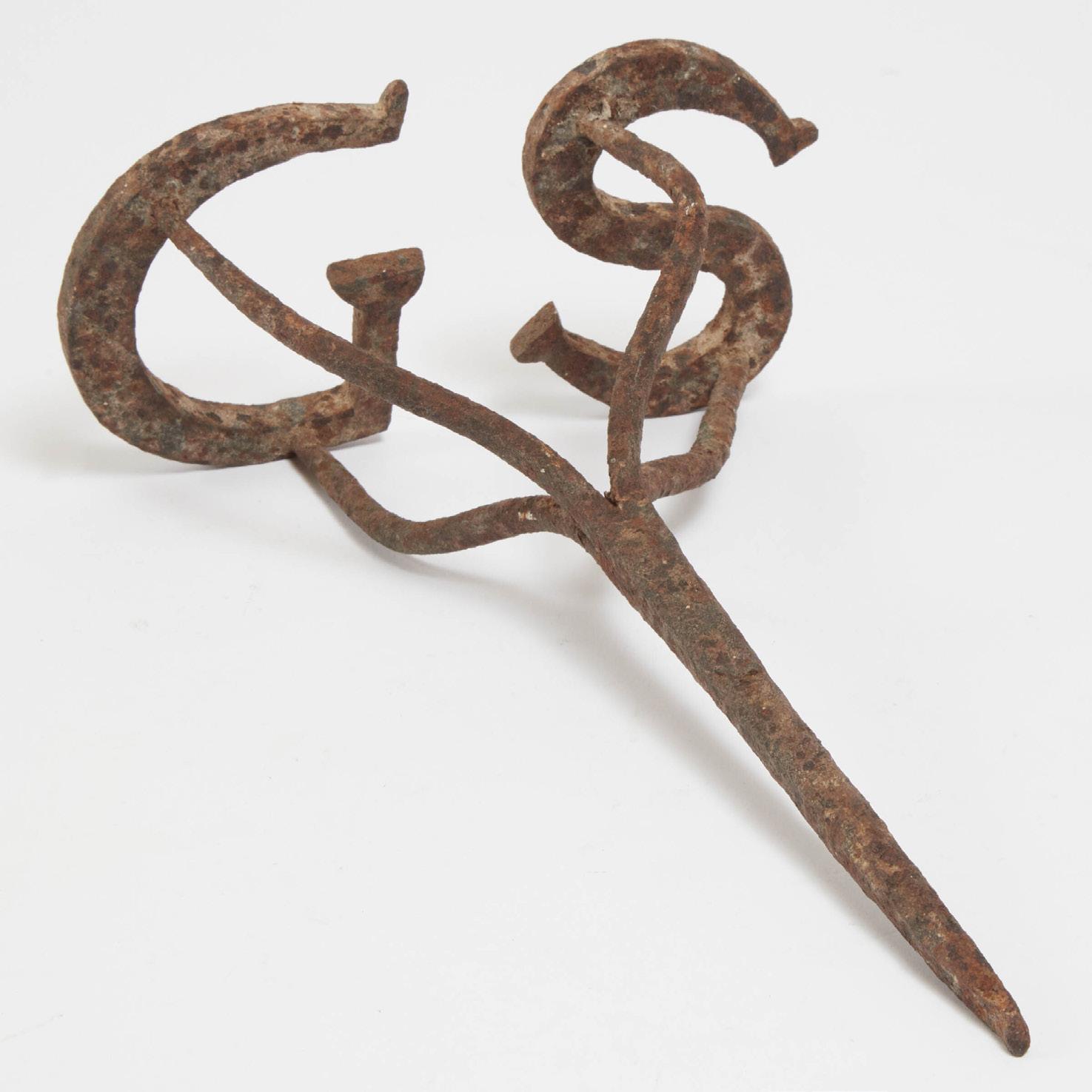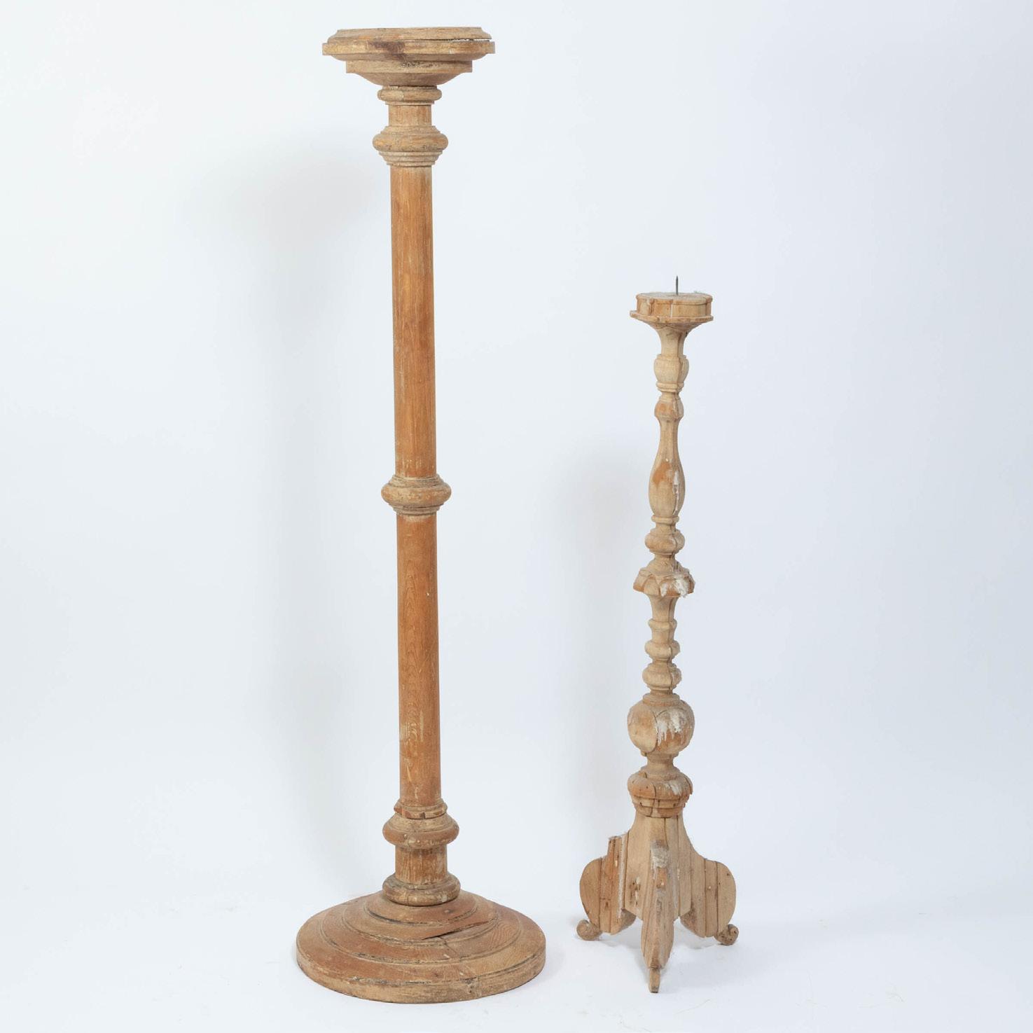 TWO LARGE ECCLESIASTICAL QUEBEC CANDLE PRICKETS, 19TH CENTURY