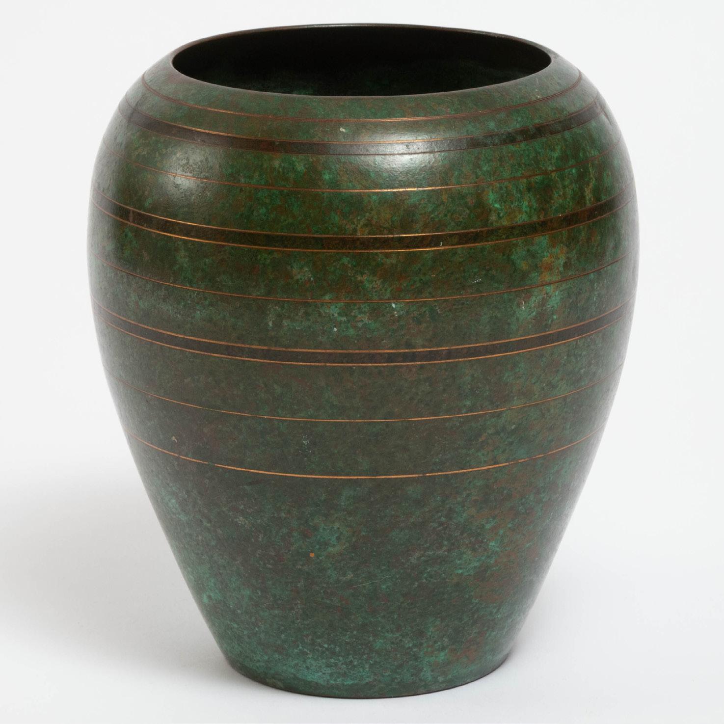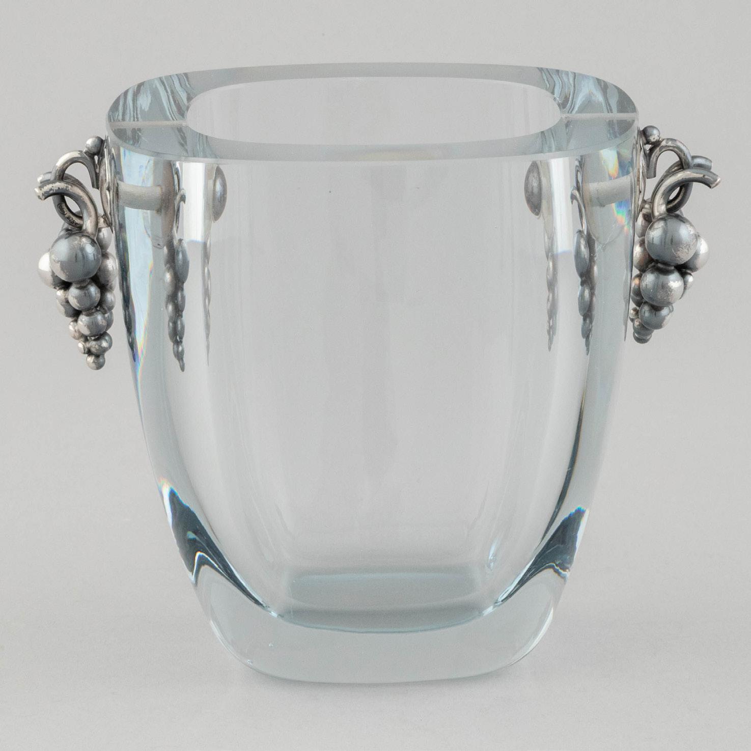 STRÖMBERGSHYTTAN SILVER MOUNTED GLASS VASE, MID-20TH CENTURY
