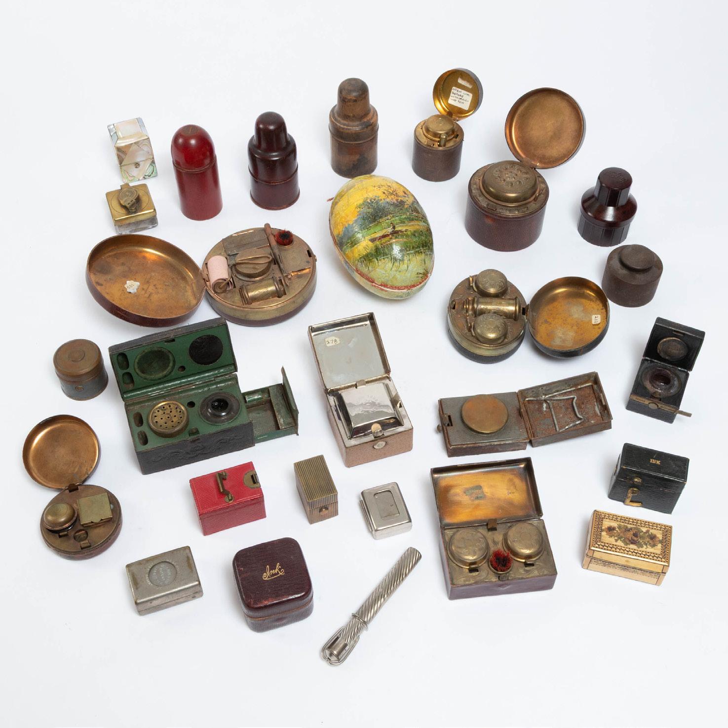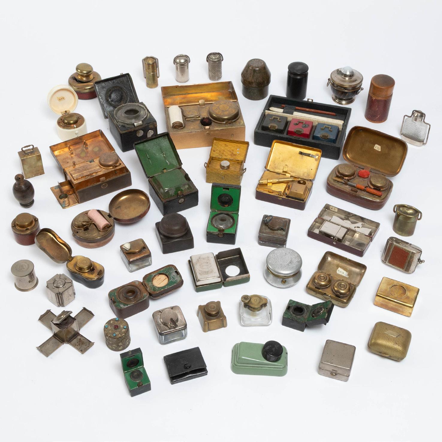 EXTENSIVE AND VARIED COLLECTION OF TRAVELLING INKWELLS, 19TH AND EARLY 20TH CENTURIES