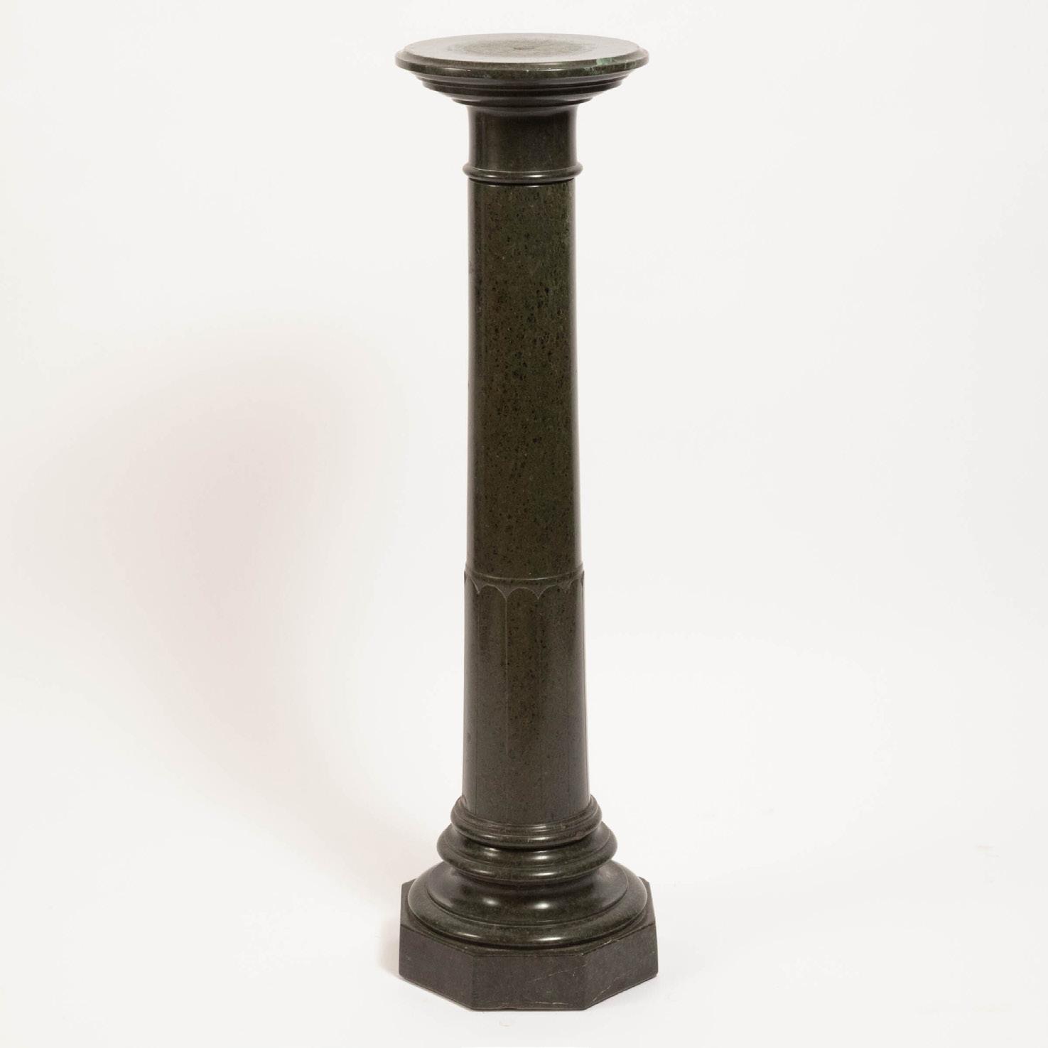 ITALIAN VERDE ANTICO MARBLE COLUMN FORM PEDESTAL, EARLY 20TH CENTURY