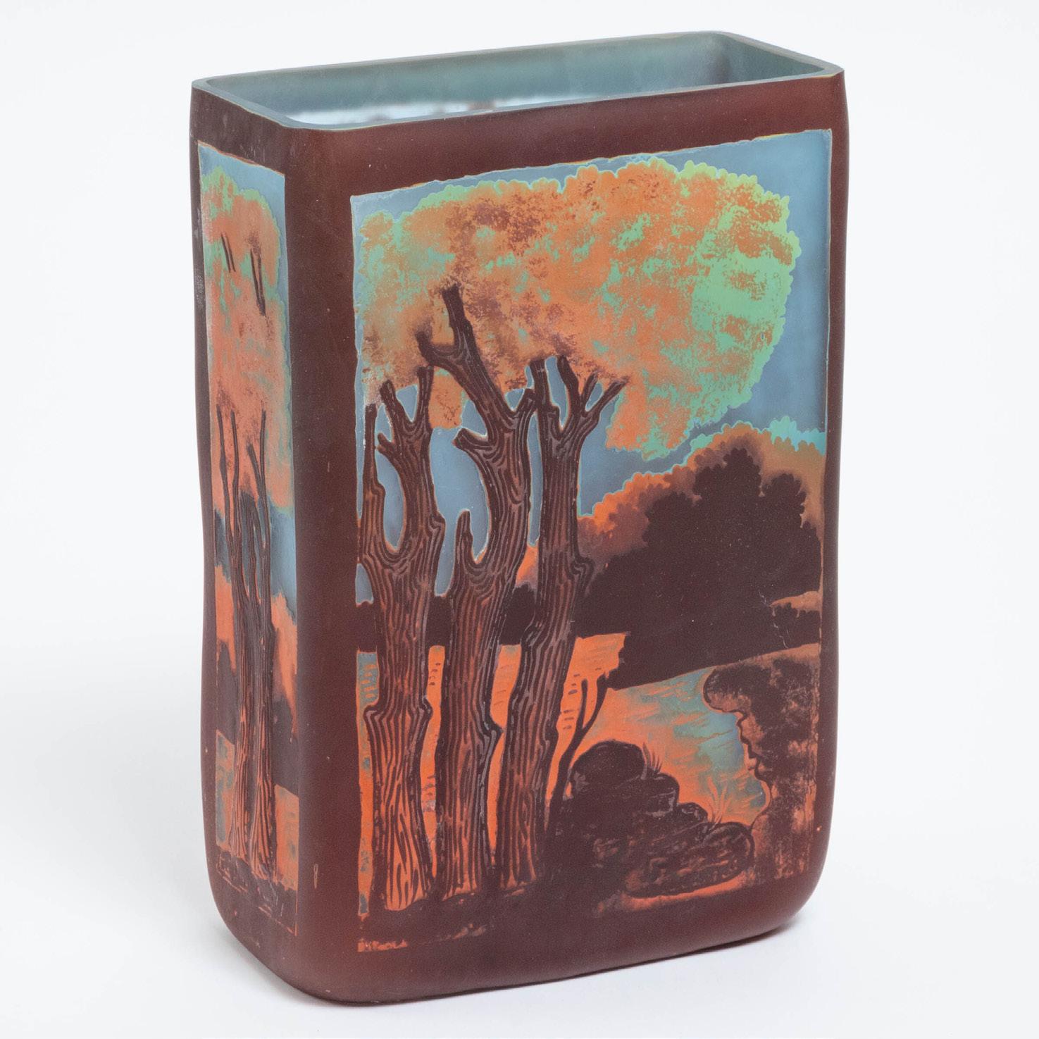 GALLÉ STYLE CAMEO LANDSCAPE VASE, 20TH CENTURY
