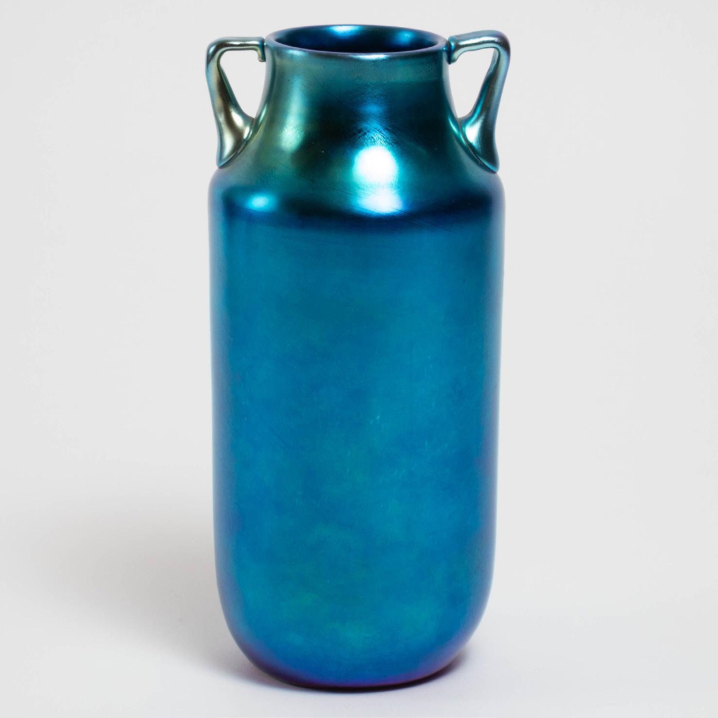 SILVER OVERLAID BOHEMIAN IRIDESCENT GREEN GLASS VASE, EARLY 20TH CENTURY