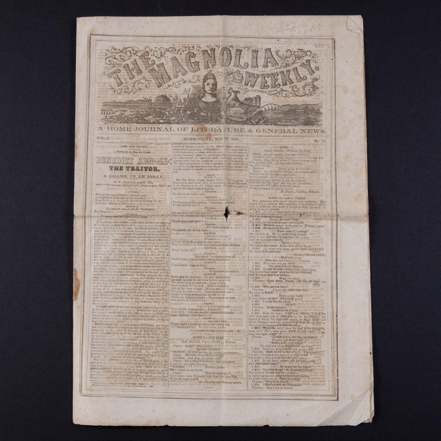 AMERICAN CONFEDERATE BROADSHEET, THE MAGNOLIA WEEKLY, RICHMOND, VA, MAY 23, 1863 vol. 1, no. 23, open 34 x 24 in — 86.4 x 61 cm