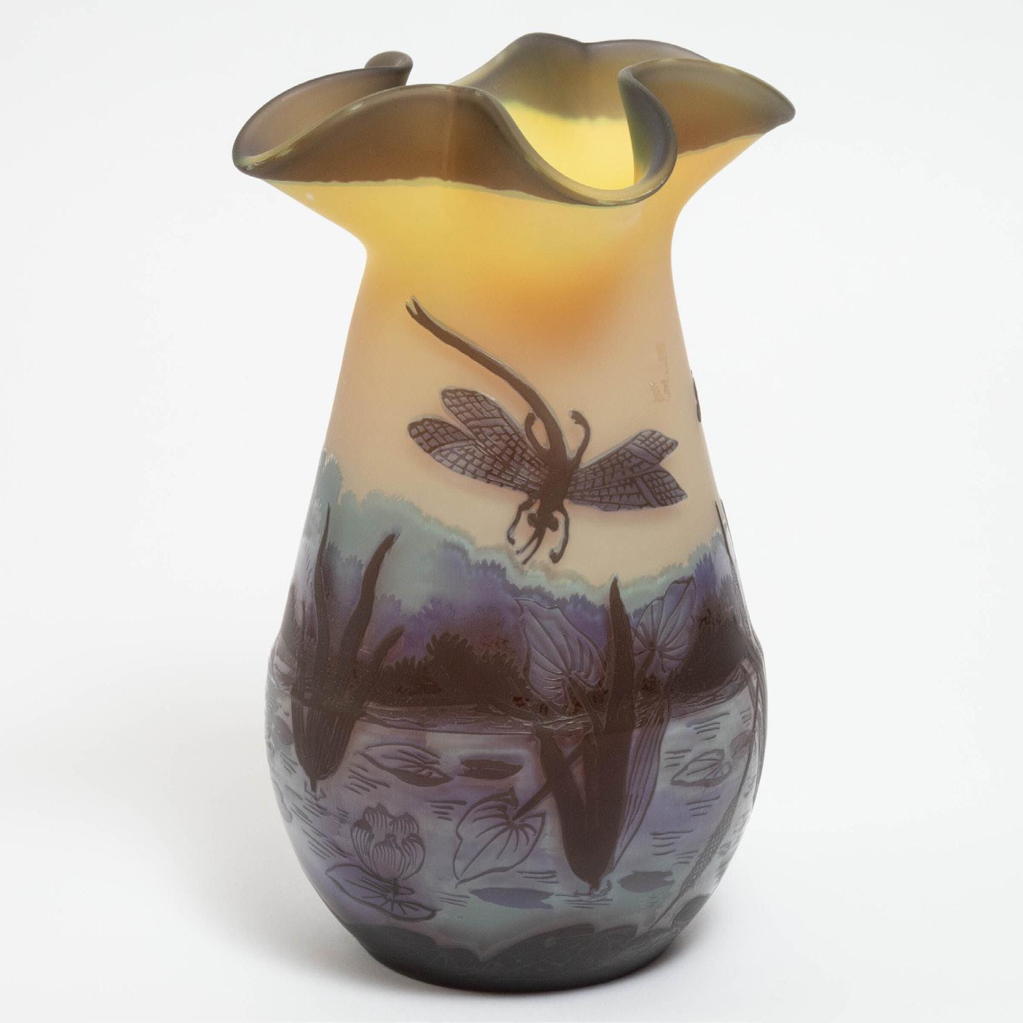 GALLÉ STYLE CAMEO GLASS DRAGONFLY VASE, 20TH CENTURY
